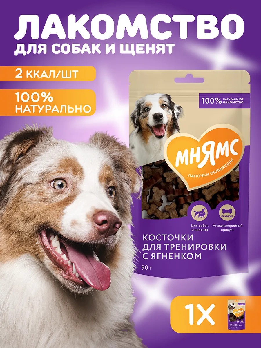 Мнямс тренировочные лакомства "Косточки" с ягненком для взрослых собак и щенков старше 3-х месяцев предназначены для поощрения питомца во время прогулки и дрессировки. Благодаря высокой вкусовой привлекательности, низкой калорийности и оптимальному размеру каждого лакомства идеальны для собак любых пород. Не пачкают руки и не крошатся, подходят для использования в интерактивных игрушках.