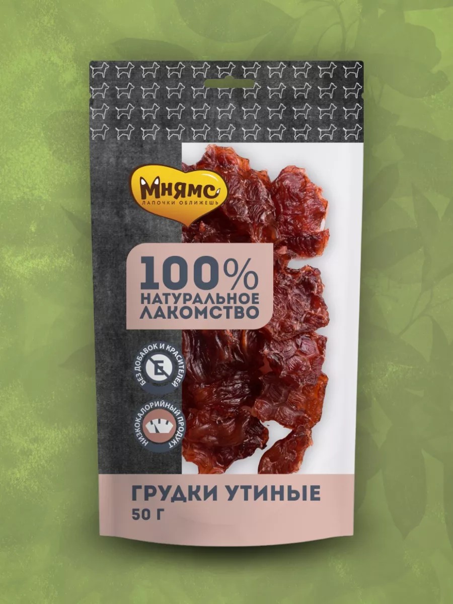 | Количество предметов в упаковке | Лакомство для собак Грудки утиные 50г |