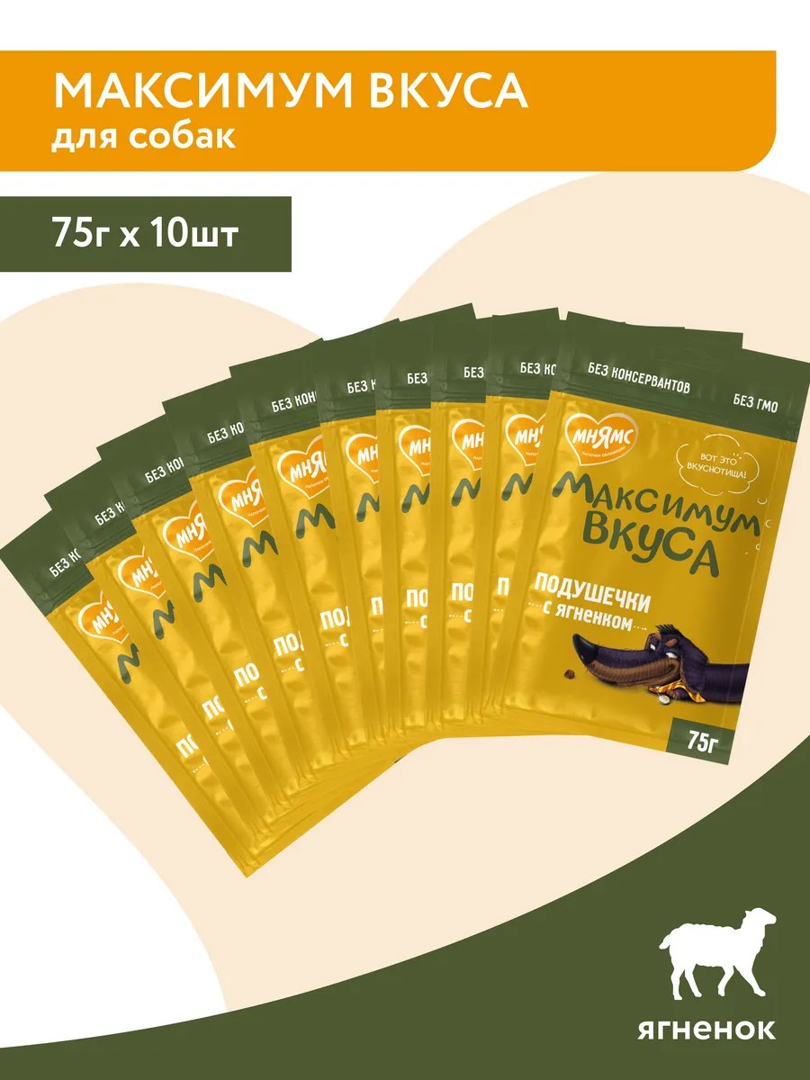 Лакомство Мнямс подушечки с ягненком для собак «Максимум вкуса» создано с учетом физиологических особенностей питомцев. Этот продукт разработан при участии ветеринарных врачей и идеально подходит для маленьких и средних пород собак.