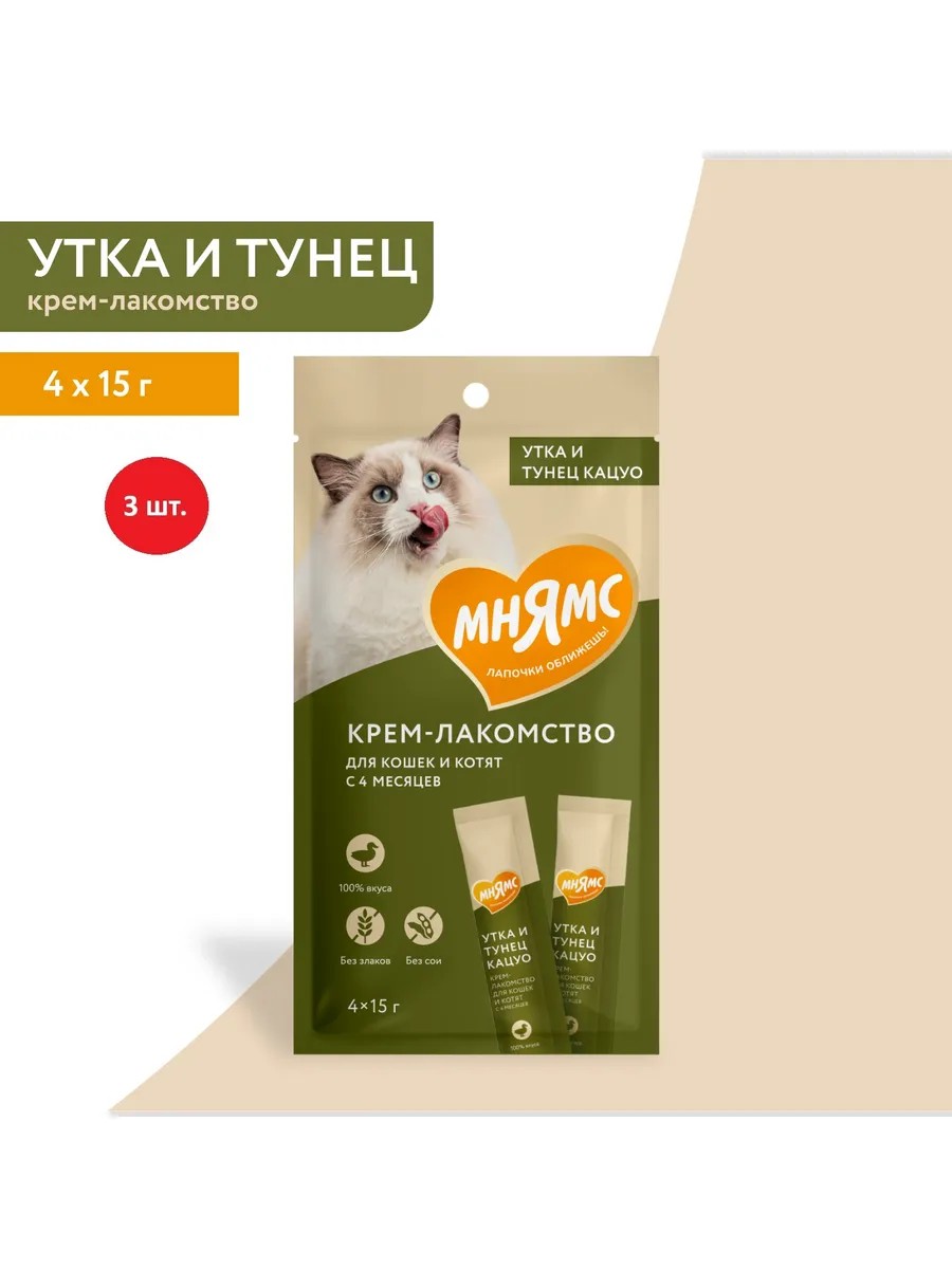 Крем-лакомство для кошек с уткой и тунцом 15гх4шт*3уп