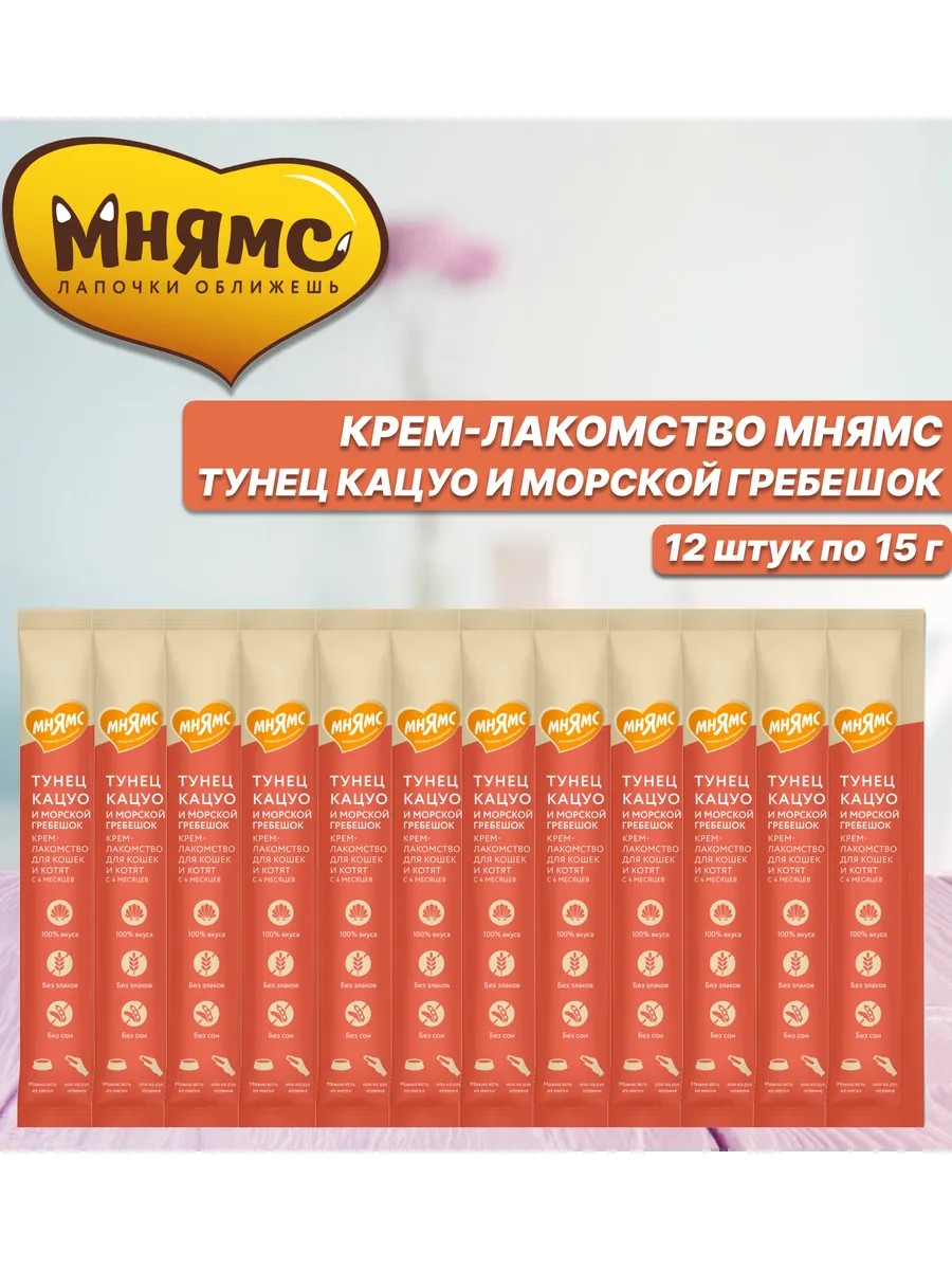 Мнямс Крем-лакомство для кошек Кацуо и морским гребешком 15г*12шт