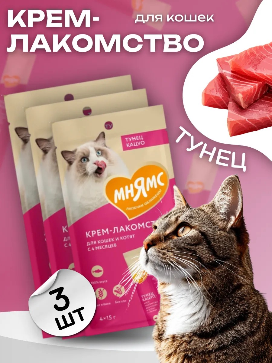 | Количество предметов в упаковке | Мнямс Крем-лакомство для кошек с тунцом 15 г х 4 шт. |