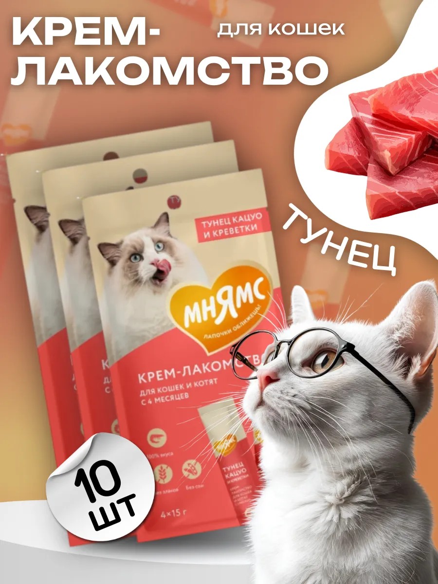 | Комплектация | Крем-лакомство для кошек с тунцом и креветками 10 шт |