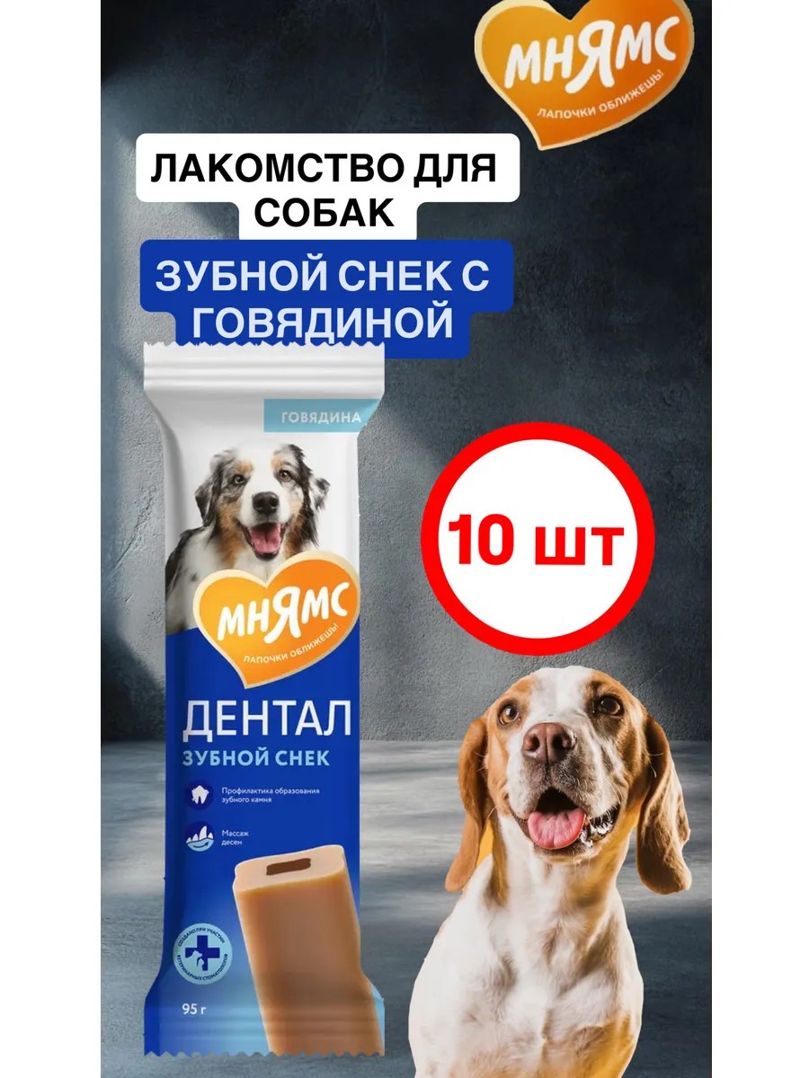 Мнямс Лакомство ДЕНТАЛ для собак "Зубной снек" с говядиной 10 шт