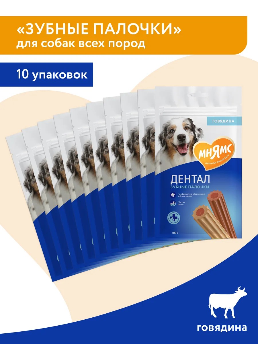 Мнямс ДЕНТАЛ "Зубные палочки" с говядиной – вкусное и полезное лакомство для взрослых собак и щенков старше 3-х месяцев. Обладают высокой вкусовой привлекательностью, предотвращают появление зубного налета, обеспечивают деликатный массаж десен. Благодаря особой форме гарантируют тщательное очищение зубов и снижают риск развития заболеваний полости рта.