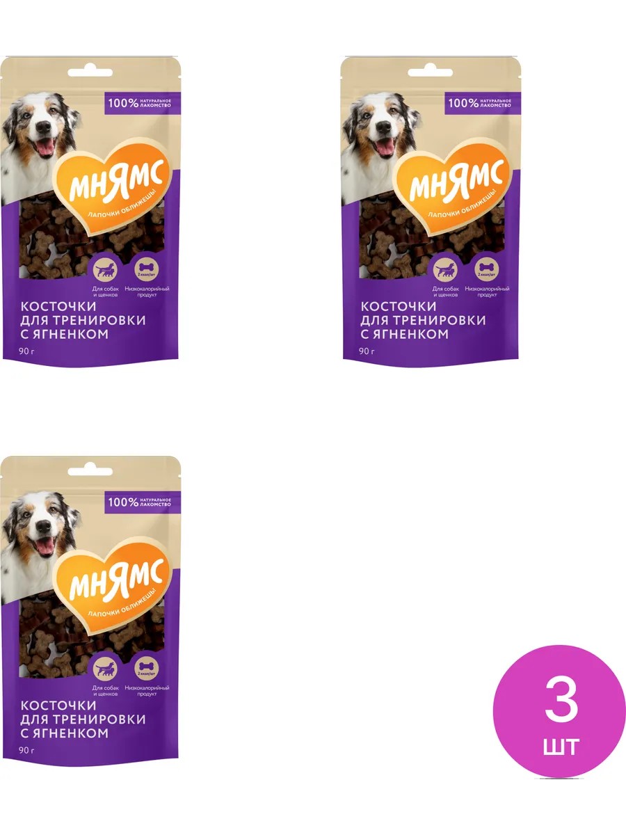 Лакомства для собак Мнямс Косточки для тренировки, ягненок 90г / зоотовары. Комплект состоит из 3 шт. Цена за комплект. У собак много инстинктов и природных привычек: они любят кусать, жевать все, что им интересно и привлекательно. Из-за гиперактивности вашего питомца может пострадать мебель дома. Подобные неприятности легко предотвратить заранее с помощью специальных средств. Одним из них является лакомство для собак Мнямс Косточки для тренировки. Косточки для взрослых собак и щенков старше 3-х месяцев предназначены для поощрения питомца во время прогулки и дрессировки. Благодаря высокой вкусовой привлекательности, низкой калорийности и оптимальному размеру каждого лакомства идеальны для собак любых пород. Не пачкают руки и не крошатся, подходят для использования в интерактивных игрушках. Жевательные косточки помогают в уходе за зубами, а главное - удовлетворяют важный природный инстинкт. К тому же, его без проблем можно использовать в качестве поощрения за правильное выполнение команд. Вес - 90г. Собачье лакомство изготовлено только из натуральных и полезных ингредиентов: мясо и мясные субпродукты (в том числе ягненок 26%), крахмал кукурузный, растительные масла, мальтодекстрин, клетчатка свекловичная, патока, лецитин, таурин, краситель натуральный. Хотите обучить своего четвероногого друга нескольким простым командам или просто удовлетворить его потребности в жевании и кусании? Купите лакомство Мнямс Косточки для тренировки! Лакомства для собак / сушеные лакомства для собак / кость для собак лакомство / лакомство для собак для зубов / лакомство для животных.