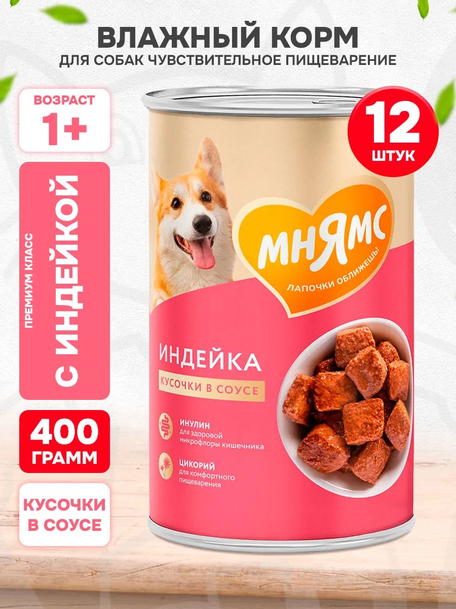 Мнямс Корм для собак влажный для пищеварения индейка 400 г 12 шт