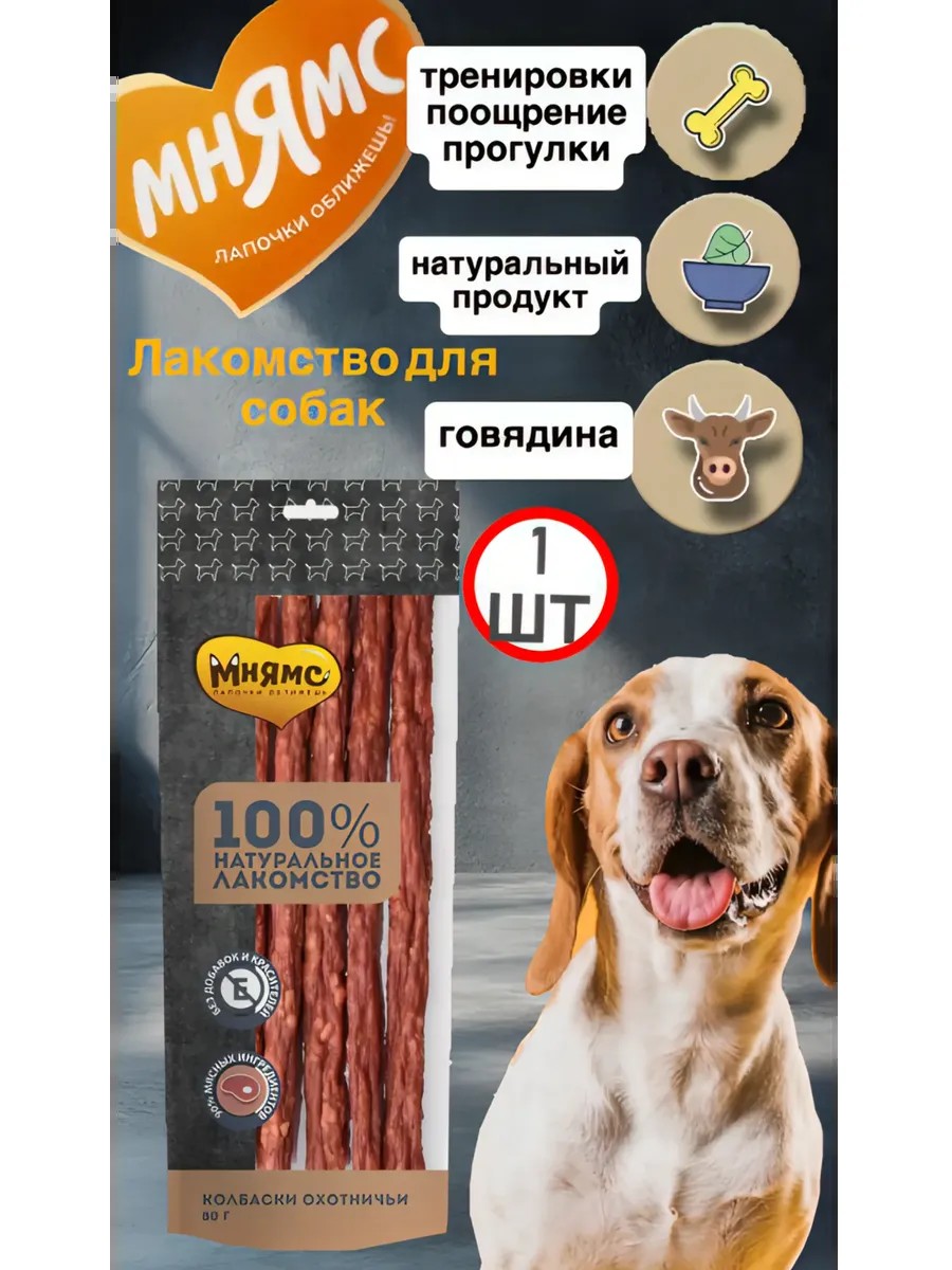 Мнямс Лакомство для собак охотничьи колбаски говядина 1 упак 80гр