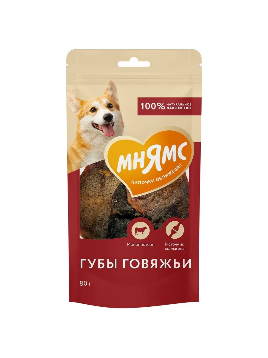 Лакомство Мнямс для собак Губы говяжьи- это вкусное и долгоиграющее лакомство для собак, которое подойдет даже самым привередливым питомцам. Содержит большое количество белка и коллагена для поддержания суставов и связок вашего питомца.