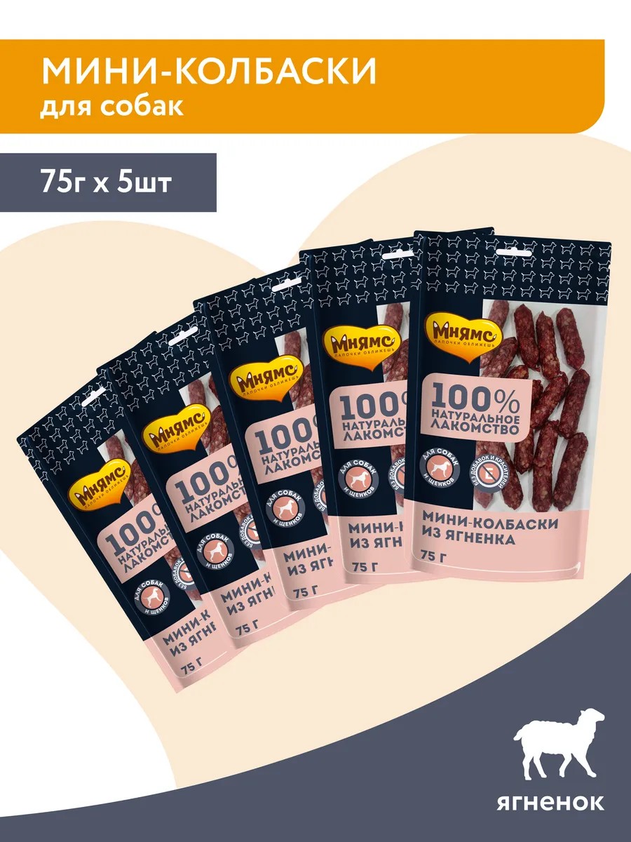 Мнямс лакомство для собак Мини-колбаски из ягненка - вкусное и полезное лакомство для собак мелких и средних пород, а также щенков старше 3-х месяцев с высоким содержанием белка, незаменимыми аминокислотами, витаминами и минералами. Обладают высокой вкусовой привлекательность, идеально подходят в качестве ежедневного угощения и поощрения во время тренировок.