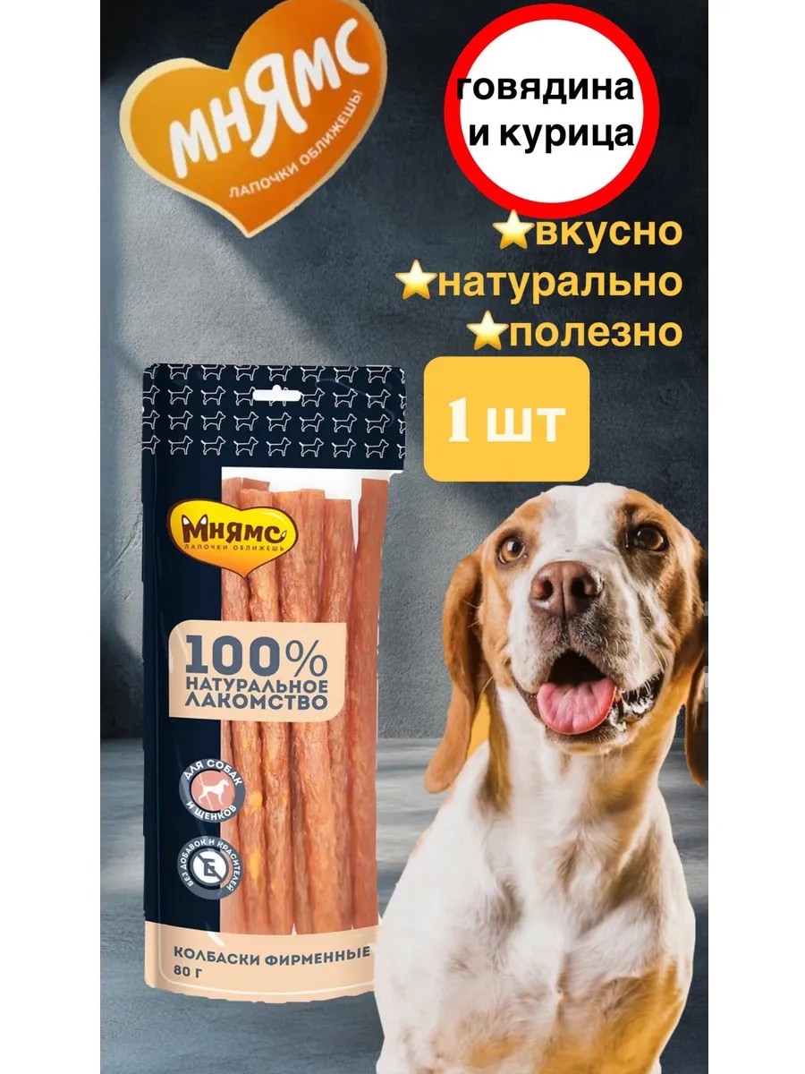 КомплектацияМнямс Лакомство для собак Колбаски фирменные говядина и курица 80г