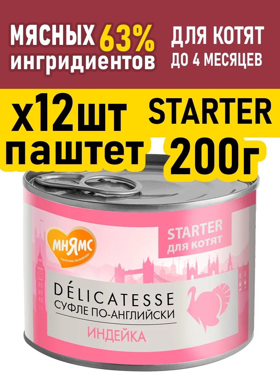 Мнямс Мнямс для котят влажный из индейки паштет 12 шт 200 г