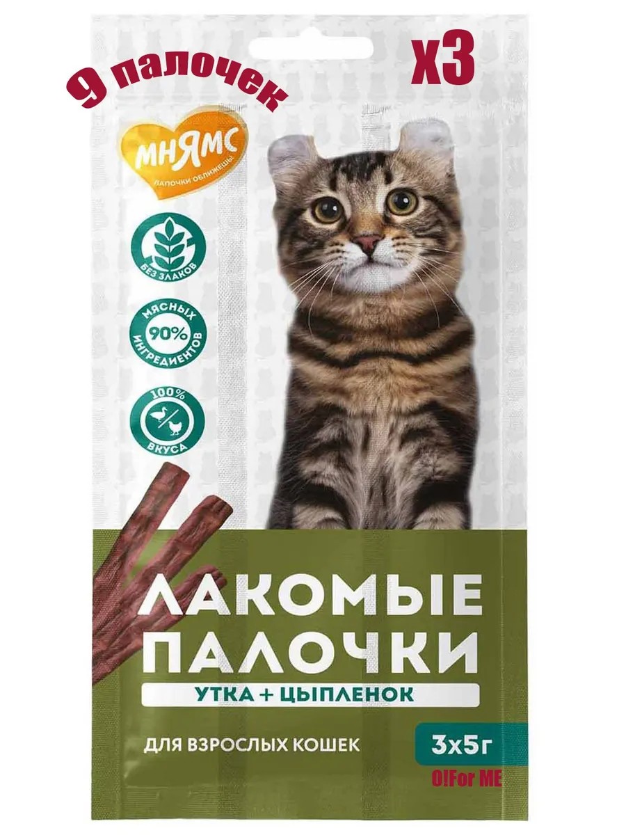 Лакомство Мнямс лакомые палочки для кошек из цыпленка и утки 3х5 г - 3 упаковки