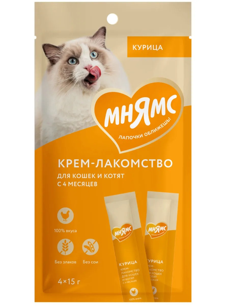 | Комплектация | лакомство крем с курицей для кошек упаковка 60 гр - 4 шт в упаковке |