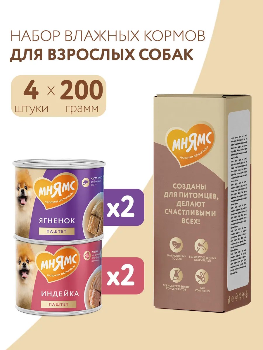 Набор кормов Мнямс На каждый день Паштет для собак "КОМФОРТНОЕ ПИЩЕВАРЕНИЕ И КРАСИВАЯ ШЕРСТЬ" 200 г * 4 шт.