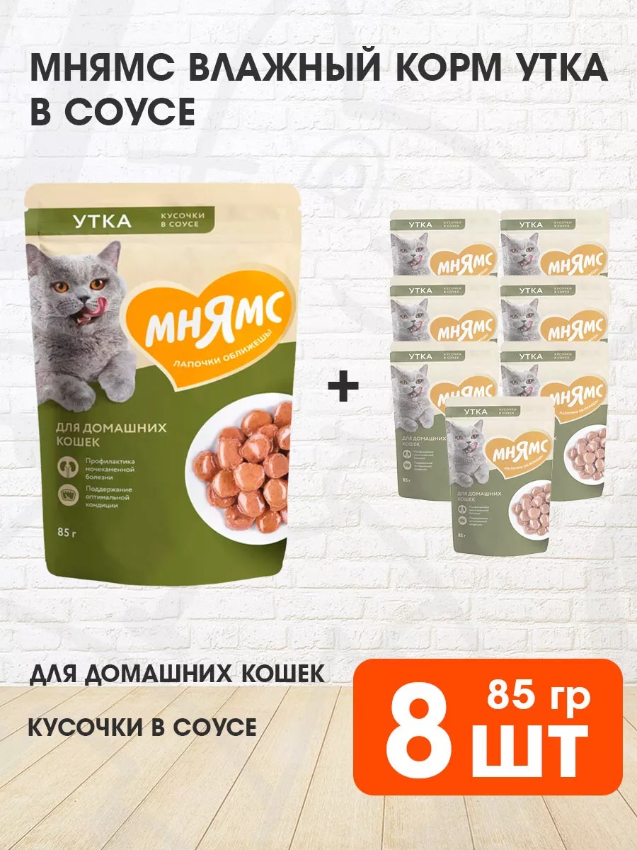 Корм Мнямс для кошек влажный - полнорационный функциональный влажный корм Мнямс для домашних кошек с уткой в соусе.