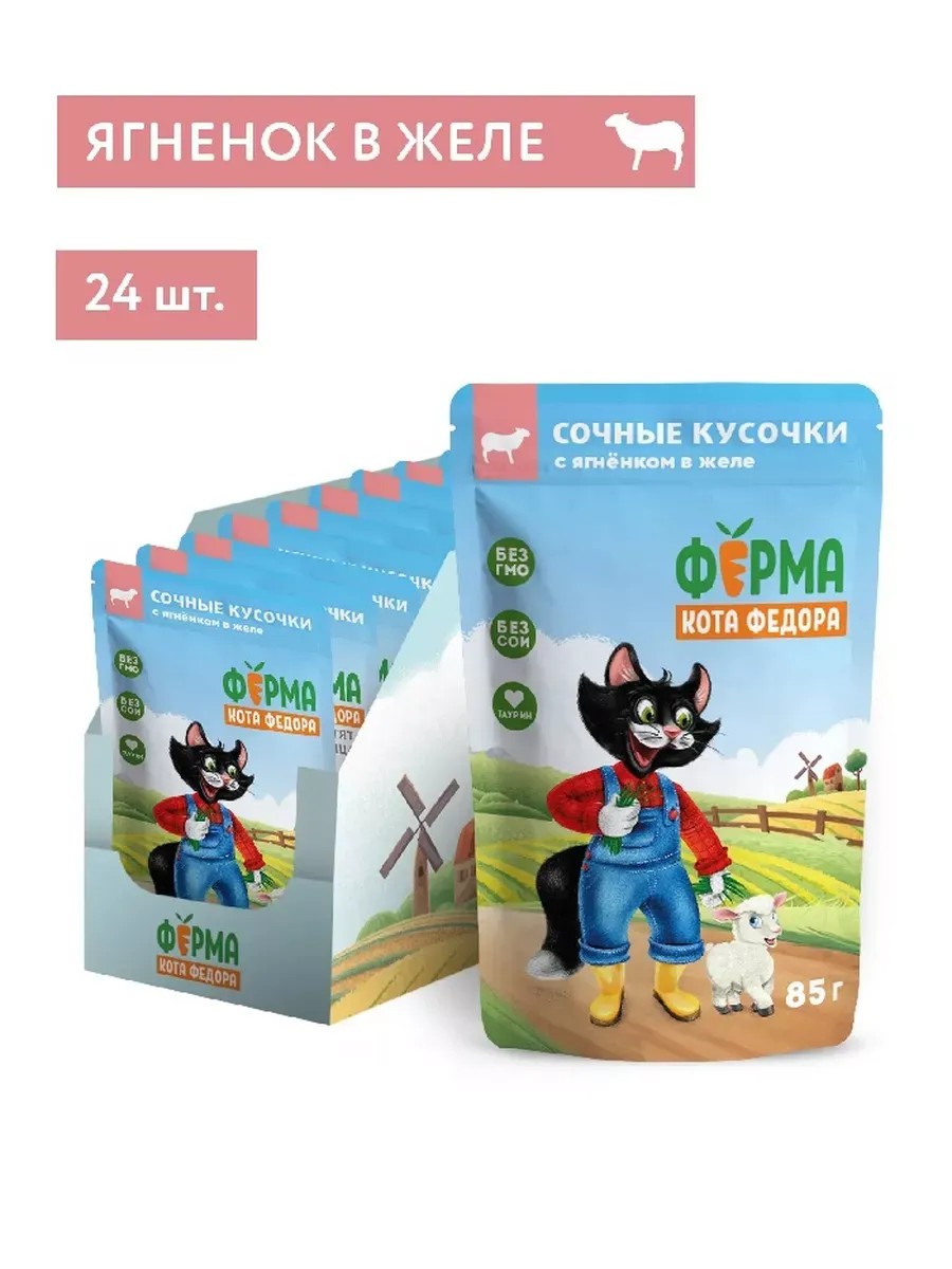 | Полное наименование товара | Влажный корм для кошек Мнямс Ферма кота Федора Кусочки ягненок в желе 85 г |