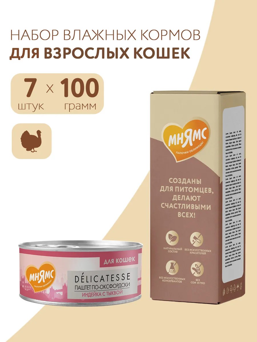 Набор кормов Мнямс Деликатес Индейка с тыквой для кошек "Паштет по-оксфордски" 100 г * 7 шт.