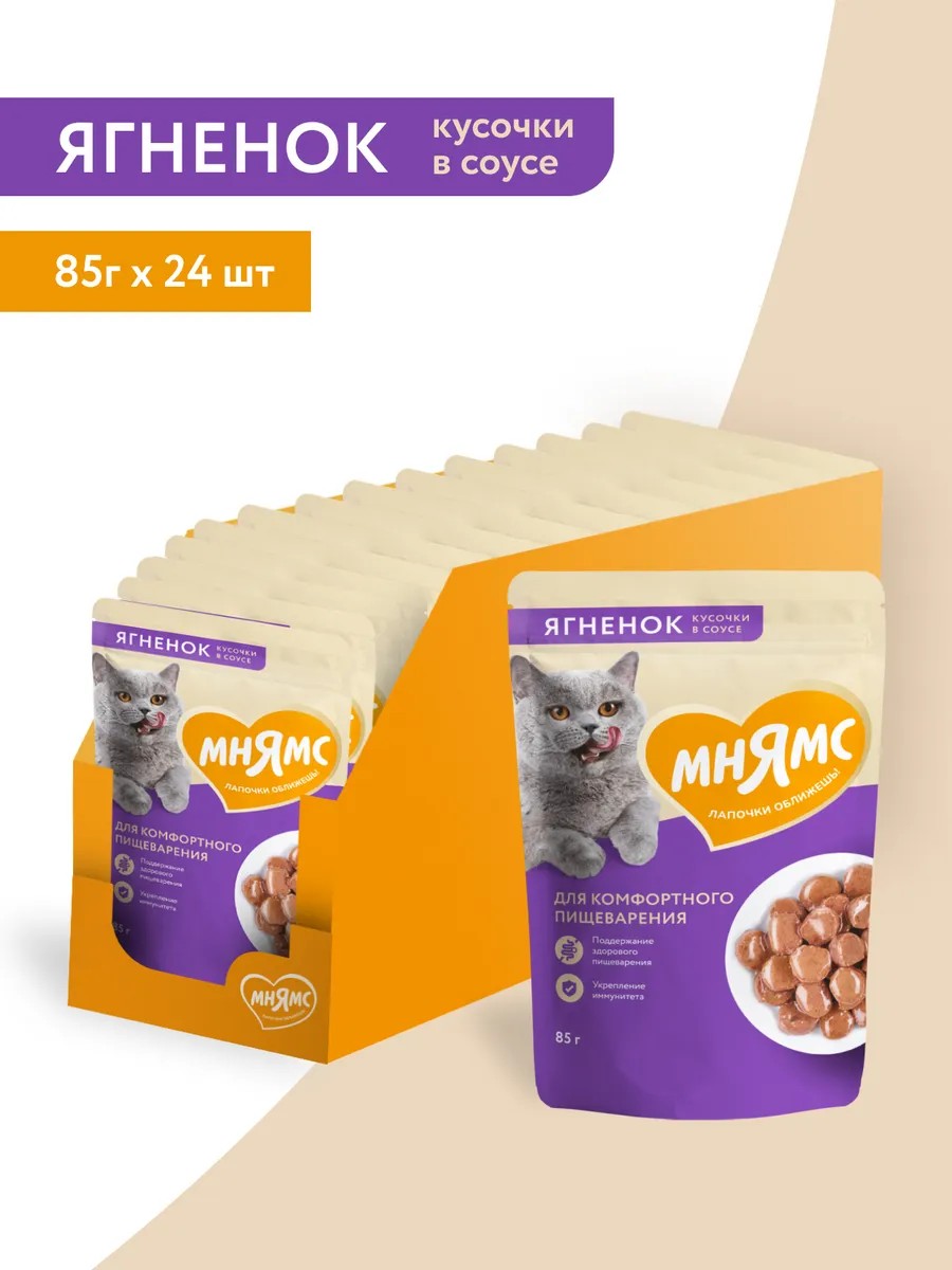 Мнямс Влажный корм для кошек с ягненком 85гх24 шт