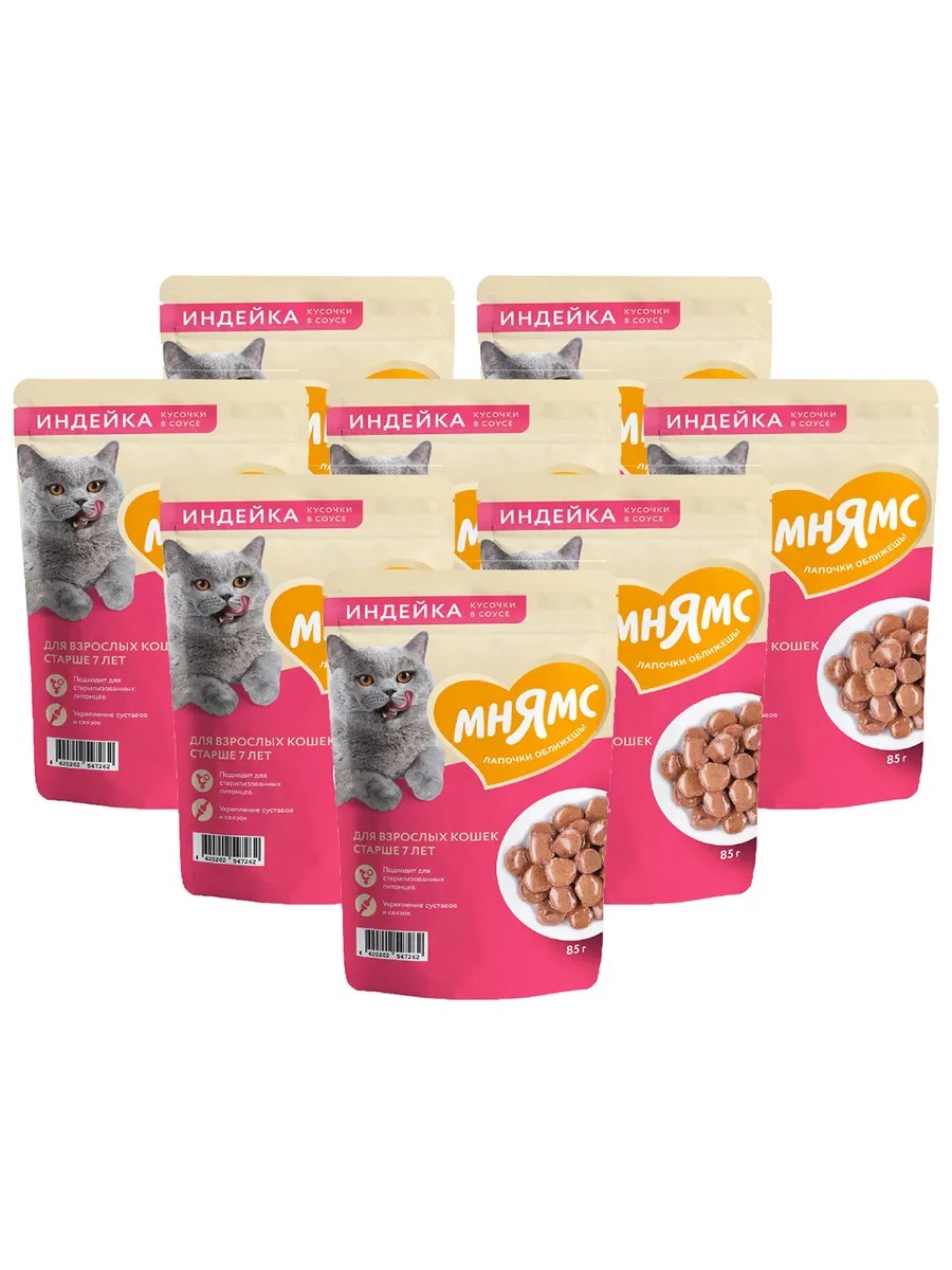 Мнямс Корм влажный для пожилых кошек 7+ индейка в соусе 85 г 8 шт