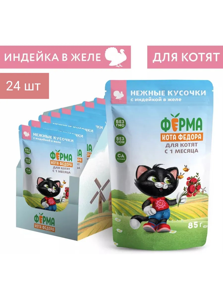 Влажный корм для котят с индейкой от фермы кота Федора — это идеальное решение для полноценного питания вашего питомца.