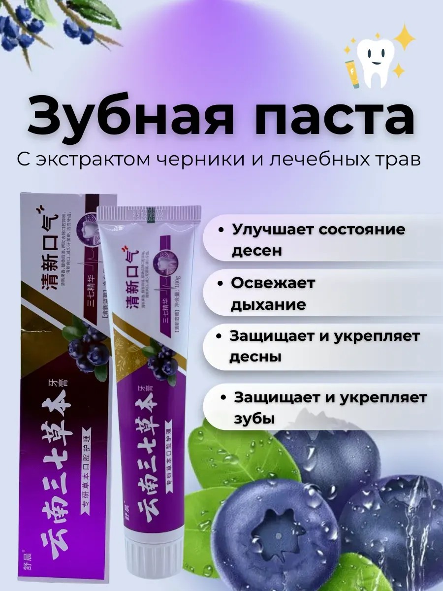 Натуральная зубная паста с черникой — идеальный выбор для ежедневного ухода за полостью рта. Благодаря экстракту черники и травам она бережно очищает зубы, освежает дыхание и укрепляет эмаль. Паста не содержит фтора и SLS, подходит для чувствительных зубов и десен, предотвращает кариес и образование налета.