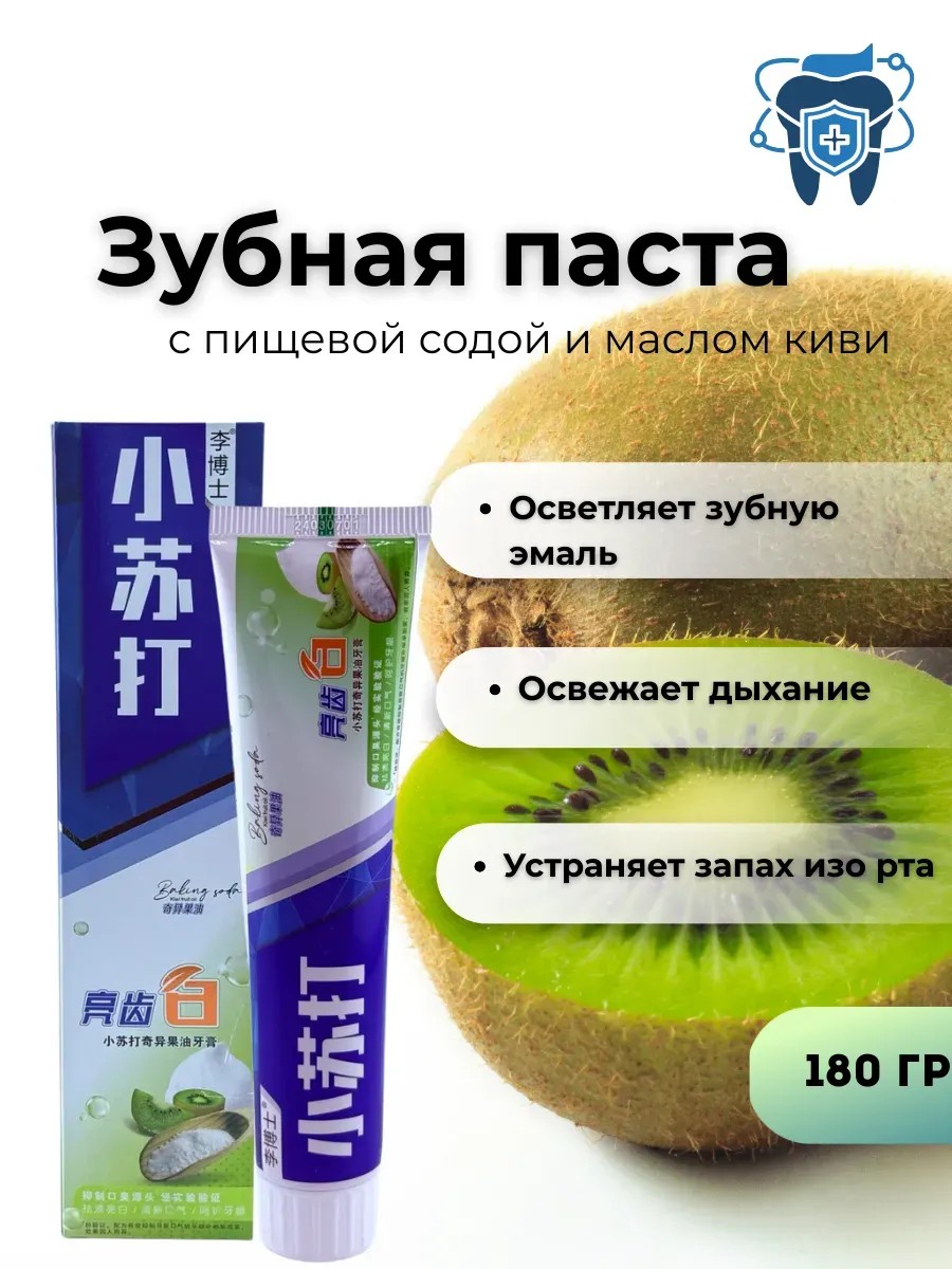 Забота о здоровье полости рта начинается с правильного выбора зубной пасты! Паста с пищевой содой и экстрактом киви мягко очищает эмаль, освежает дыхание и эффективно борется с налётом и неприятным запахом. Подходит для ежедневного использования, не травмирует дёсны и дарит ощущение свежести на весь день.