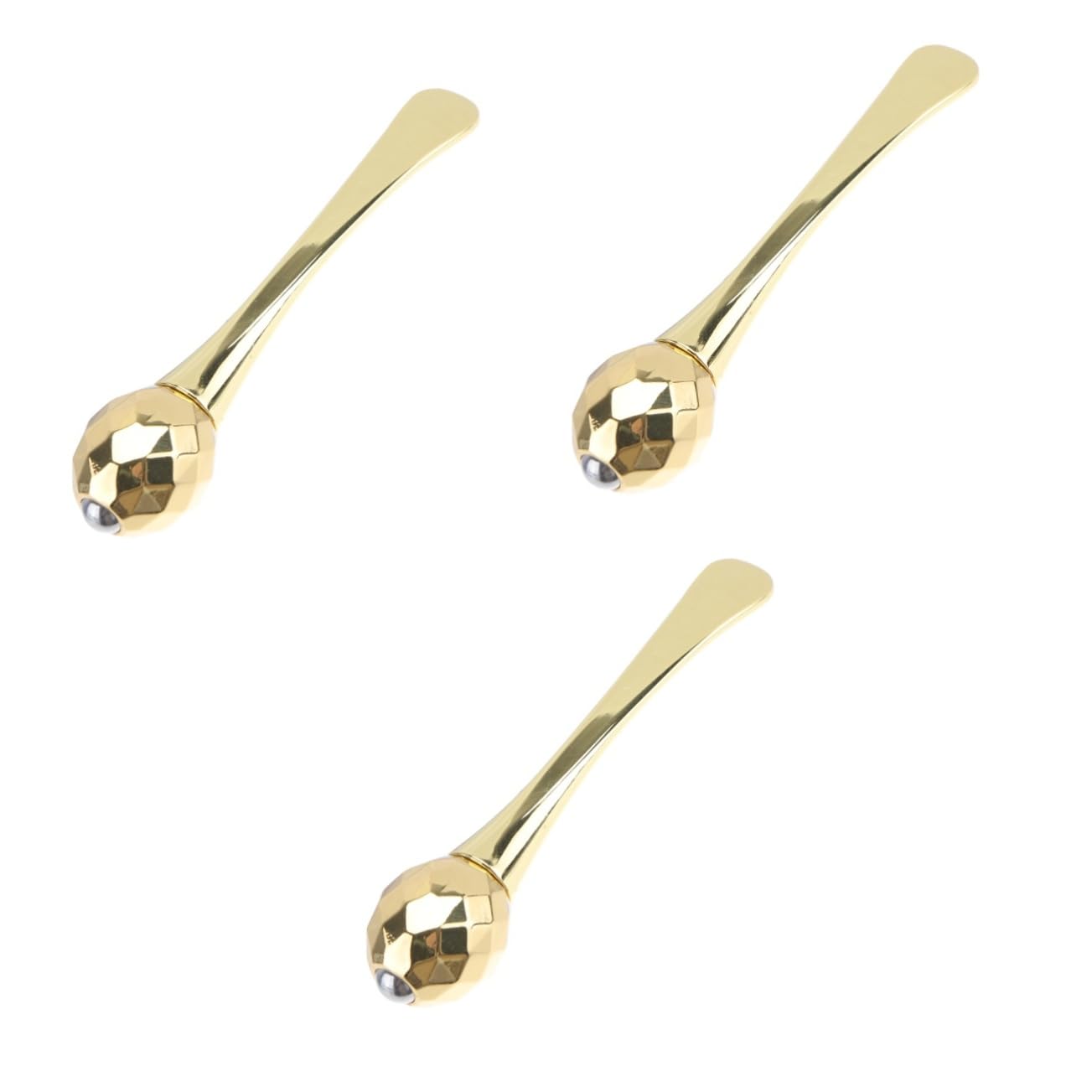 The package includes 3 eye massagers. Features: - Size: approximately 5.70 x 1.20 x 1.20 cm 2.24 x 0.47 x 0.47 inches, eye cream spoon. - Material: zinc alloy eye cream massager. - It is easy to use and will make the skin around the eyes smoother. - Relieves fatigue, speeds up and promotes eye massage. - Smooth surface, this eye massager is very safe to use with a facial cream spoon. - Made of quality zinc alloy, not easy to deform or break the eye cream spoon. - Can be given to your family and friends as a gift, a delicate and chic beauty massage stick. Product information: makeup gadget, it can be not only an eye massager but also an eye cream spoon. Facial roller massager, the eye massage rod is made of a material and smoothly polished. As a facial care tool, it is widely used to relax tired eyes. A manual massage tool, it can be used on the eyes.