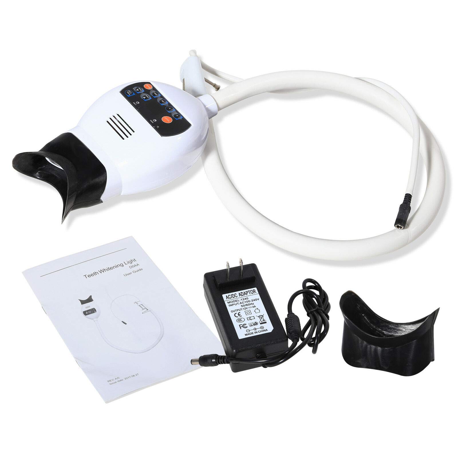 There are three light modes: blue light purple light red light: Blue light is for accelerating the gel decomposition. The normal whitening gel in the market is use the blue light. Purple light, some of the special teeth whitening gel needs the purple light. If the gel doesn't ask for the purple light, we don't need use the purple light. Red light can increase the activity of cells, promote cell metabolism, accelerate blood circulation, to eliminate the effectof inflammation of the treatment. After the whitening finished, if the guests feel a sense of pain, We can use the red light for 10 15 minutes, If no pain, no need to irradiation. Specification: Light: 8Pcs Input Voltage: AC 100V 240V, 50 60Hz Output Voltage: 4.7V Power: 40VA Wavelength: 460-490nm Time Adjust: 1-60min Power adjust: High Low Light Model: B R BR Package includes: 1 main body 1 power cord 1 manual 2 mouth guard