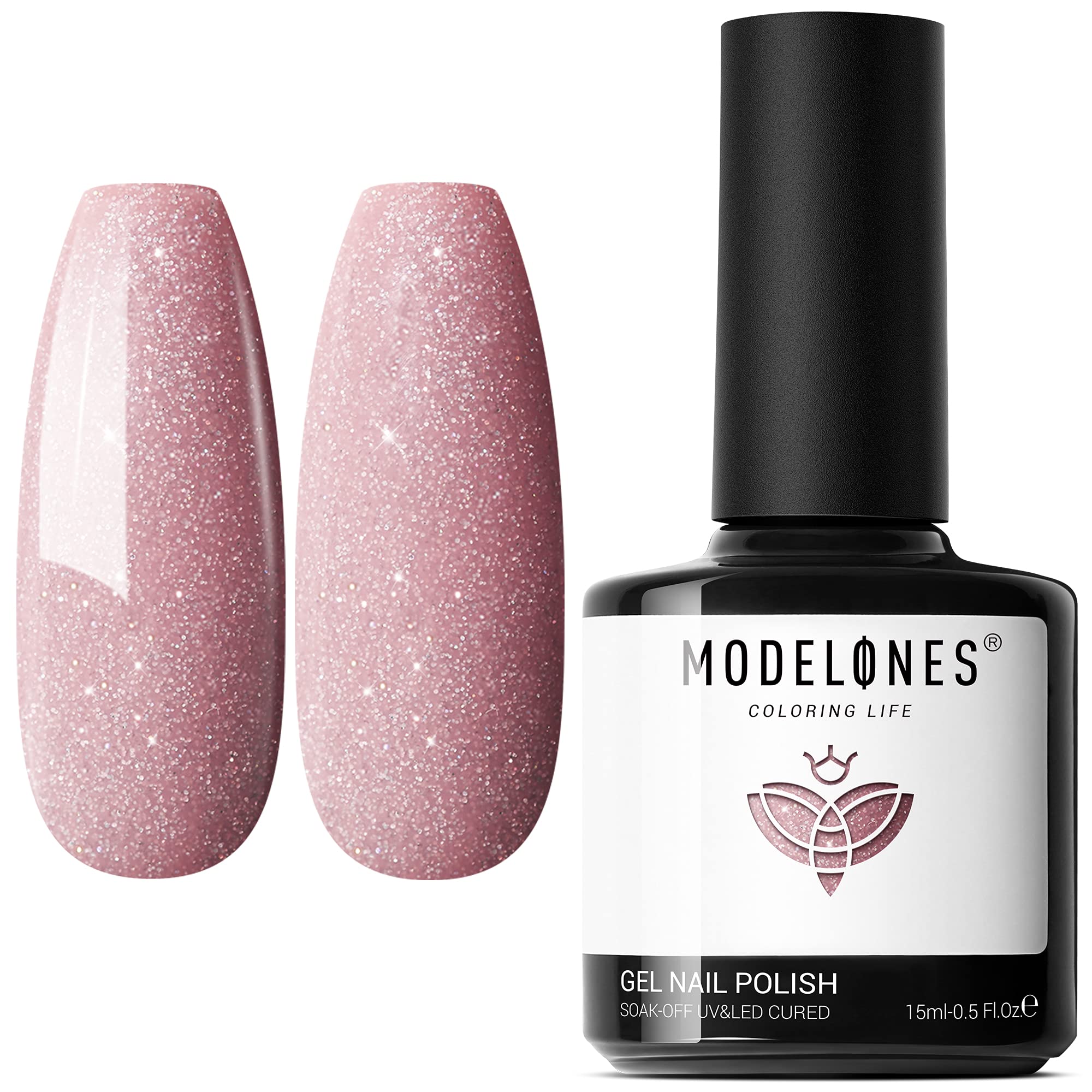 Modelones Gel Nail Polish, 15ML Pink Silver Glitter Gel Polish Soak Off LED Color Nail Polish, 0.5 Fl Ounce A26-Glitter Pink 0.5 Fl Oz (Pack of 1)