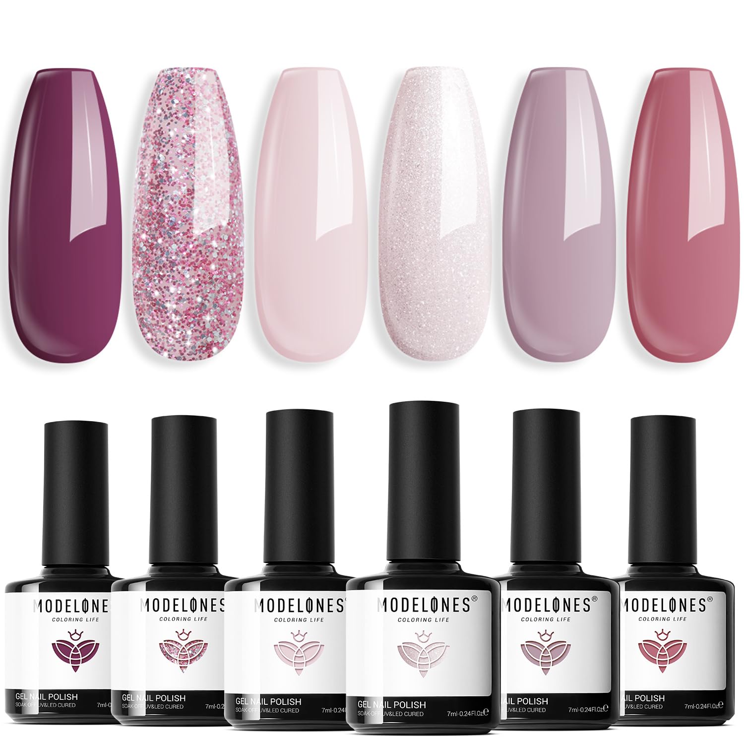 WARNING Tips: May cause an allergic reaction by skin contact. Please do a skin test before using. Read directions for use carefully. Only used for nails. Avoid contact with eyes, mouth and skin. Rinse them immediately should the product comes into contact with them. Any problem, please contact us. We are more than happy to help you out. Ideal Gift for Her: French White Pink Purple Glitter Nail Gel Polish is a brilliant gift for a family member or friend for Mother’s Day, Birthdays, Anniversaries, Valentine’s Day, or other holidays. This is a fantastic, beautiful, unique beauty gift set that will be loved by all who receive it. Modelones Clear Logo Nude Pink Gel Nail Polish Kit with an innovative " Color Window " design, help you easy to find the one that suits your style when your manicure. 28 Days No Peel-off & Easy Application: The series of Pastel Pink Trendy Popular gel polish kit is made of professional formula, which is adjusted after 72 tests. High durability and Intense pigmentation nude pink gel polish only need 1 Coat, 1 Stroke, Cure under the nail lamp for 60s, and you will get the natural, smooth and sexy looking nail art and long-lasting for 28+ days. No chips, breaks, bubble and yellowing problems. can stay last longer and brings you a brilliant shine finish. Healthy & Bubble free: Modelones Romantic Charming Gel Polish is made with 11 Non-toxic Free Ingredients, which make the Nail Gel Lacquer more healthy and lower odor. No harsh ingredients or adhesives that lead to damaged nails, say Goodbye to Air-bubble and Peel-off problems. Classic Pink Gel Nail Polish: 6Pcs x 7ml/0.24oz Purple Glitter Barely Pink White Nail Polish Gel Kit. Chosen from the latest fashion and timeless trends, this elegant pink nail gel polish set is suitable for any holiday, special event and daily routine life. Achieve the best modern salon-looking gel mani at home for a small fee.