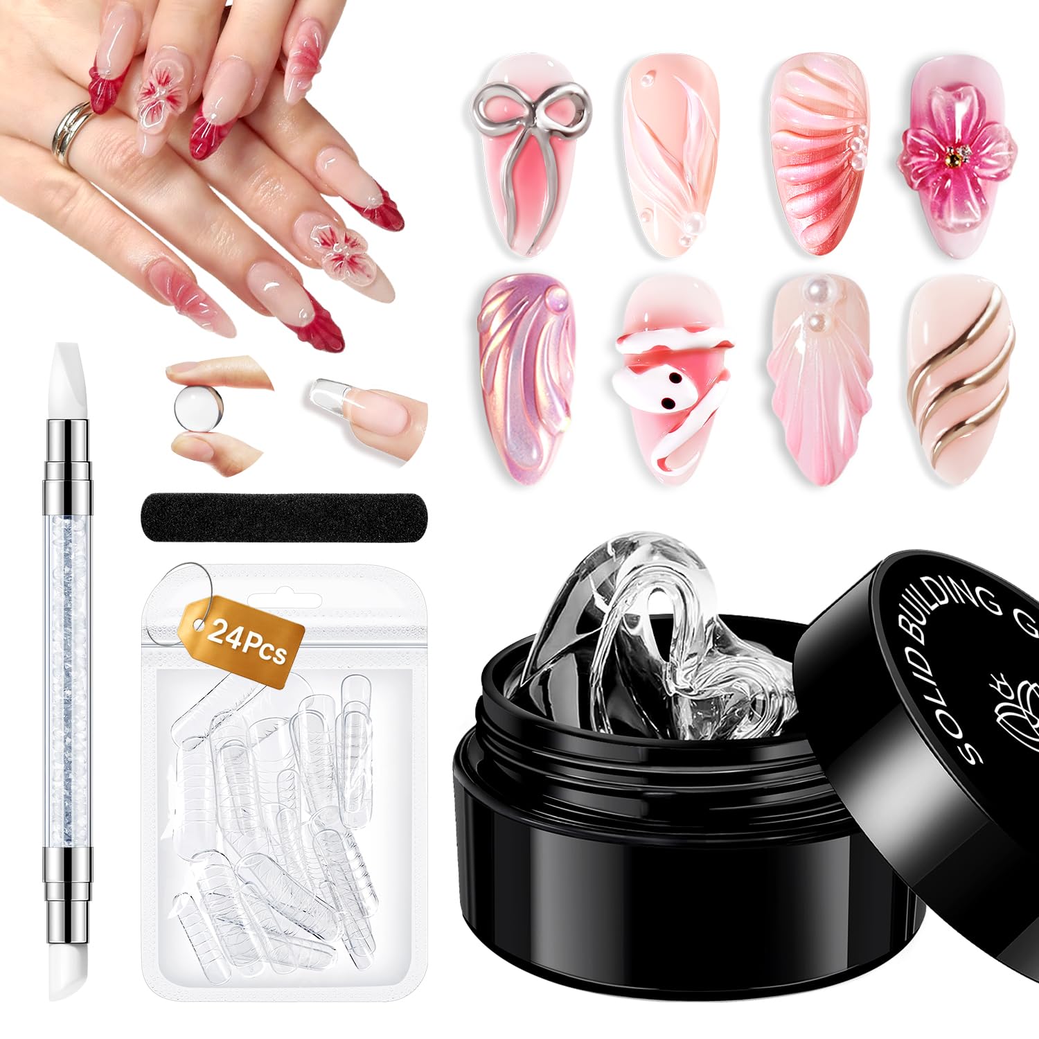 Ideal for DIY Nail Art: This 3D nail art gel is perfect for anyone who wants to create stunning and long-lasting nails at home or in a salon. Whether you're a beauty enthusiast or a professional, it offers a wide range of possibilities for creating breathtaking nail art designs, whether for a wedding, prom, party, or any other special occasion. Safe Long-Lasting: Made from natural, acid-free ingredients, this non-toxic gel polish system won't burn or irritate gel nails, making it the ideal choice for DIY nail art. This 3D UV builder gel needs to cure and lasts up to 28 days. Achieve a professional-looking manicure in minutes with this versatile and reliable product. Multifunctional Brush with Two Ends: The included nail brush has a wider head for large areas and detailed designs, and a fine tip for applying nail glue or small patterns. Easily create intricate nail art and even use it to apply small jewels or create beautiful nail decorations. Quick and Easy Application: This multifunctional hard gel can be used for nail extensions, sculpting, chrome powder, glitter, and rhinestone decoration. This improved sculpting gel for nail art is soft, non-sticky, and has a solid texture. The flexible material can be kneaded to achieve any shape or other decoration, allowing you to create various 3D nails. Solid Builder Gel Set: The Modelones 3D gel set is an ideal tool for creating creative nail art designs. Includes 15g of solid builder gel, 1 3D nail pen, 24 nail forms, and 1 nail file. Ideal for use with other nail art products such as natural nails, American nail tips, false nails, acrylics and more. You can easily mix colors or apply intricate patterns, lines and designs to create unique nail art.MODELONES Gel 3D Nail Art, Solid Builder Gel Colle à Ongles Multifonctionnel Sculpting, pour Rhinestone Glue 3d Ongle, Nail Extensions,Nail Tips, Charms Design DIY Salon 15GIdéal pour Faire Ses Propres Ongles : Ce gel ongle 3d nail art est idéal pour toutes celles qui souhaitent créer des ongles époustouflants et durables à la maison ou dans un salon. Que vous soyez une passionnée de beauté ou une professionnelle. Que ce soit pour un mariage, un bal de fin d'année, une fête ou toute autre occasion spéciale, il offre un grand choix de possibilités pour créer des designs de nail art à couper le souffle. Sûr Durable : Fabriqué à partir d'ingrédients naturels et sans acide, ce système de vernis gel non toxique ne brûle pas et n'irrite pas les ongles en gel, ce qui en fait le choix idéal pour faire ses propres ongles. Ce gel construction ongle uv 3d doit durcir et dure jusqu'à 28 jours. Réalise une manucure de qualité en quelques minutes avec ce produit polyvalent et fiable. Pinceau Multifonctionnel avec Deux Extrémités : Le pinceau à ongles fourni a une tête plus large pour les grandes surfaces et les designs détaillés et une tête fine pour appliquer de la colle à ongles ou des petits motifs. crée facilement des nailart compliqués et utilise-le même pour appliquer de petits bijoux ou pour créer de belles décorations d'ongles. Application Rapide et Facile : Le gel dur multifonctionnel. Ce gel pour les ongles peut être utilisé pour les extensions d'ongles, la sculpture, la poudre de chrome, les paillettes et la décoration de strass. Ce gel de sculpture amélioré pour le nail art est doux, non collant et de texture solide. Le matériau souple peut être malaxé pour obtenir n'importe quelle forme ou autre décoration, ce qui vous permet de créer divers ongles en 3D. Set de Solid Builder Gel : Modelones le set de gel 3d est un outil idéal pour créer des designs créatifs de nail art. Comprend 15g solide builder el,1 stylo en pour les ongles en 3D,24pcs formes d'ongles,1 lime à ongles. Idéal pour une utilisation avec d'autres produits de nail art tels que ongles naturels, capsule americaine ongle, faux ongles, acryliques et.Vous pouvez facilement mélanger les couleurs ou appliquer des motifs, des lignes et des dessins complexes pour créer un nail art unique.