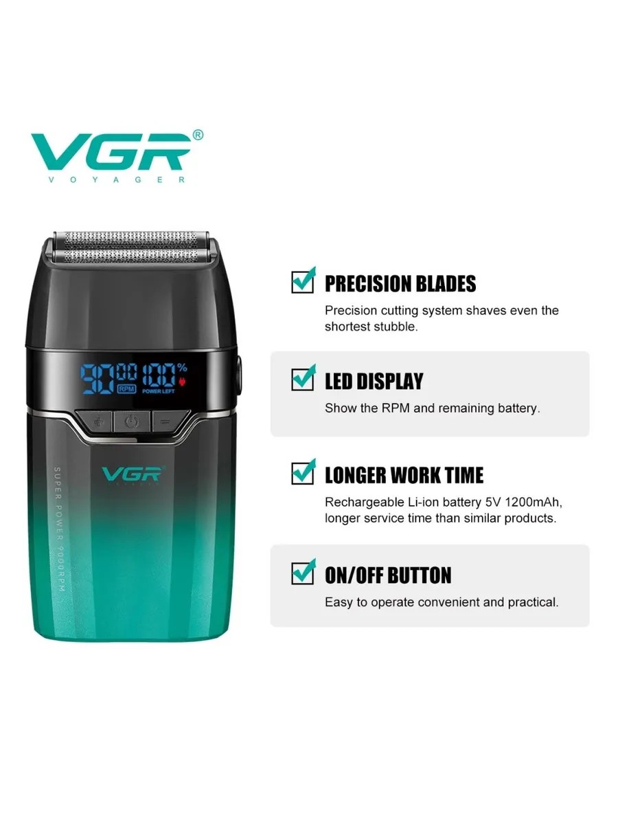 КомплектацияЭлектрическая бритва Шейвер VGR V-308 Зеленый
