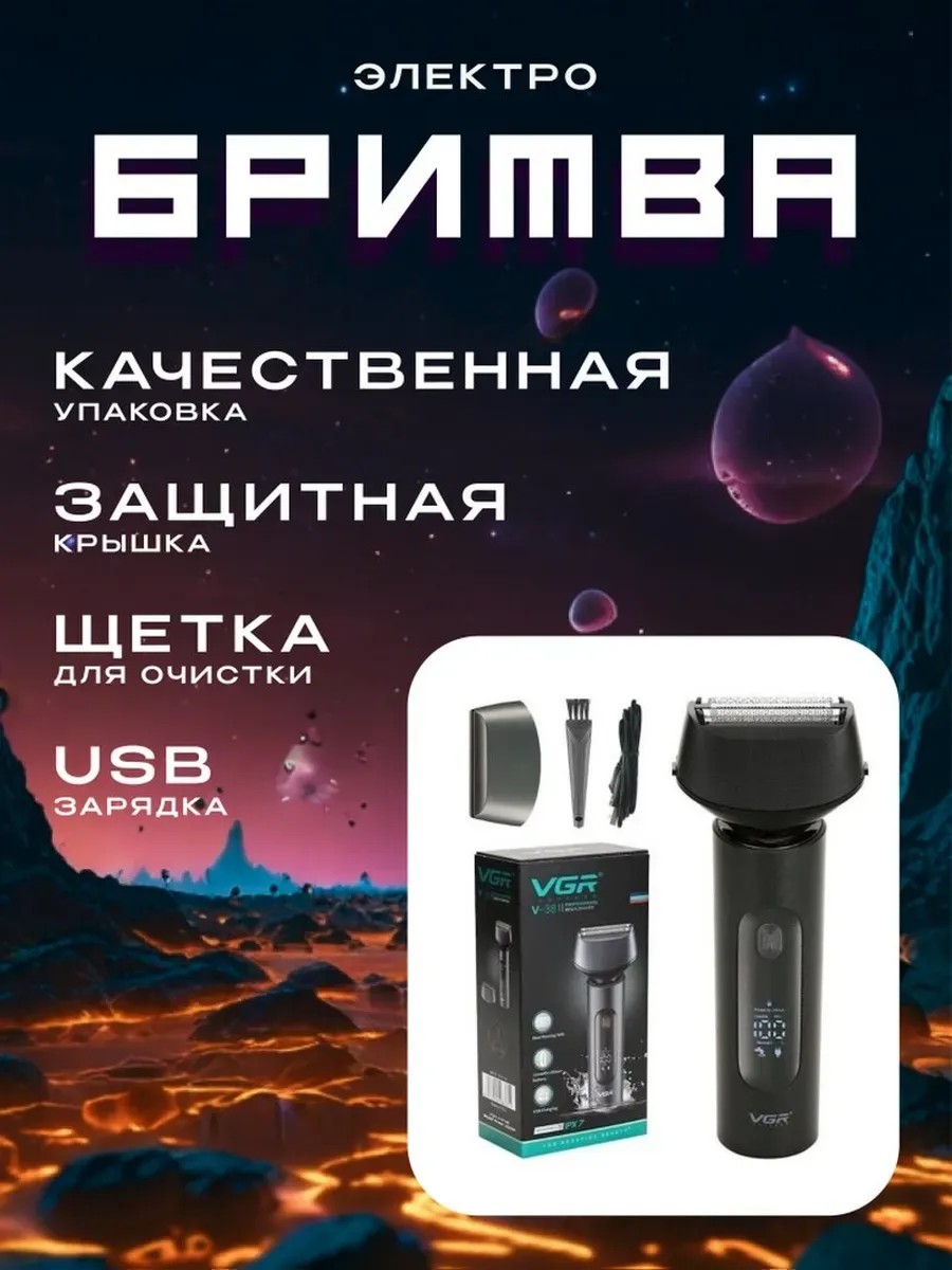 | Комплектация | Электробритва VGR V-381 - 1 шт; защитный колпачок; щеточка; USB-кабель; фирменная коробка |