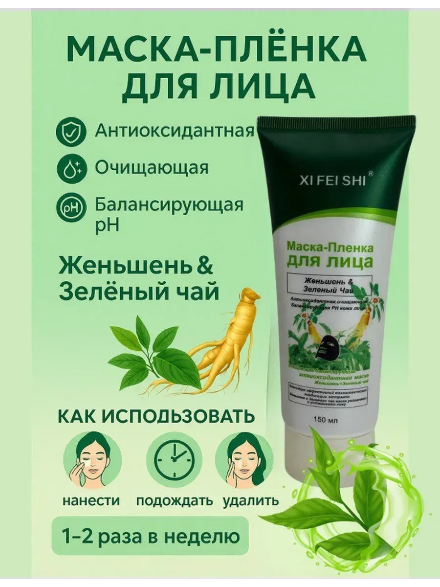 Знакомьтесь с новой маской‑пленкой с женьшенем и зелёным чаем — ваш домашний детокс‑ритуал для сияния кожи без похода в салон. Эта антиоксидантная формула борется со свободными радикалами, замедляет старение и дарит упругость. Лёгкая гелевая текстура за 15–20 минут высыхает в плотную плёнку, которая бережно удаляет загрязнения и излишки себума, не травмируя лицо. После снятия кожа остаётся мягкой, с выровненным рН и едва уловимым ароматом свежести. Как применять: Нанесите тонким слоем на чистую кожу (минус зоны глаз и губ). Дождитесь полного высыхания. Аккуратно снимите «плёнку» от подбородка к вискам. Завершите уход лёгким кремом или сывороткой. Результат — ровный тон, суженные поры и ощущение комфорта. Уже после первого применения ваша кожа будет готова к любым экспериментам с макияжем и сиять без фильтров!