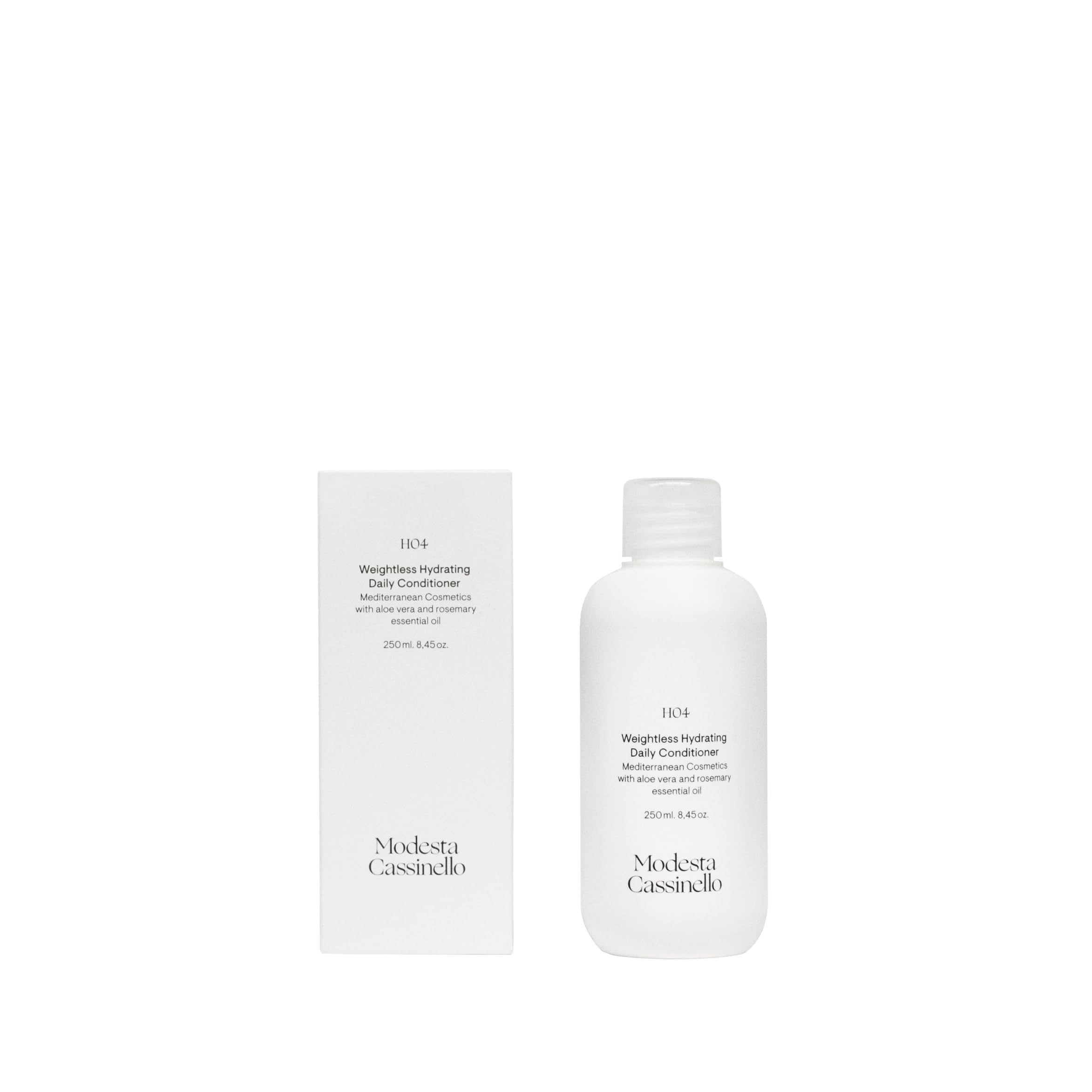 Quick and effective use – makes daily styling easier. Its creamy texture and detangling effect guarantee effortless styling, less breakage, and a comfortable and efficient hair care routine. Free from sulfates, silicones, and parabens – vegan and sustainable, with a clean formula that's kind to sensitive scalps and the environment. Suitable for daily use, even with frequent washing. Provides natural shine and softness without residue. Ideal for normal, fine, dry, or color-treated hair. Protects against daily aggressors such as sun, chlorine, and pollution, while maintaining a healthy and vibrant appearance. pH balanced and restores the hair fiber. Its formula helps to level the pH after washing, sealing the cuticle and repairing the hair fiber for stronger, more resilient, and silky-smooth hair. 96 naturally derived ingredients - Artichoke, aloe vera, shea, and argan combine artichoke leaf extract (purifying), aloe vera (soothing), and shea butter and argan oil (nourishing). Strengthens the hair structure, reduces frizz, and adds shine without weighing hair down. Gentle daily conditioner (H04) – Silicone-free cleansing and moisturizing. Light and creamy formula, ideal for frequent use. Leaves hair clean, moisturized, and easily detangled from the first use. Free of silicone, parabens, and petrochemical derivatives.Modesta Cassinello - H04 Après-shampoing à usage fréquent avec extrait d'artichaut, aloe vera et huiles essentielles, sans sulfates ni parabènes pour tous types de cheveux, 250 mlUtilisation rapide et efficace - Facilite le coiffage quotidien. Sa texture onctueuse et son effet démêlant garantissent des coiffures sans effort, moins de casse des cheveux et une routine capillaire confortable et efficace. Sans sulfates, silicones et parabènes - Vegan et durable, formule propre et respectueuse du cuir chevelu sensible et de l'environnement. Convient pour un usage quotidien, même lors de lavages fréquents. Apporte brillance naturelle et douceur sans résidu. Idéal pour les cheveux normaux, fins, secs ou colorés. Protège contre les agressions quotidiennes telles que le soleil, le chlore ou la pollution, tout en conservant un aspect sain et vital. pH équilibré et restauration de la fibre capillaire. Sa formule aide à niveler le pH après le lavage, en fermant la cuticule et en réparant la fibre capillaire pour des cheveux plus forts, plus résistants et au toucher soyeux. 96 d'ingrédients d'origine naturelle - Artichaut, aloe vera, karité et argan combine l'extrait de feuille d'artichaut (purifiant), l'aloe vera (apaisant) et le beurre de karité et l'huile d'argan (nourrissant). Renforce la structure capillaire, réduit les frisottis et apporte de la brillance sans alourdir. Après-shampoing quotidien doux (H04) – Nettoyage et hydratation sans silicone Formule légère et crémeuse, idéale pour un usage fréquent. Laisse les cheveux propres, hydratés et facilement démêlés dès la première utilisation. Sans silicone, sans parabènes ni dérivés pétrochimiques.