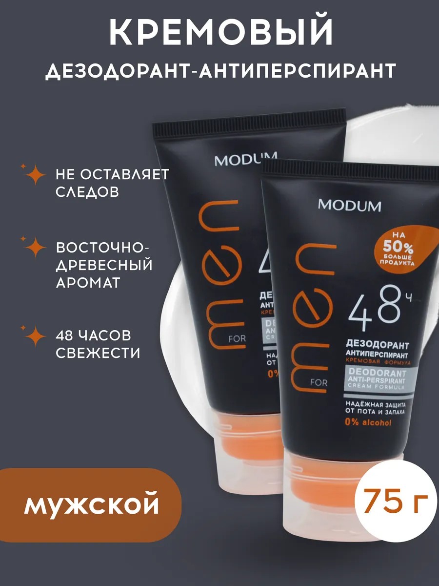 Дезодорант-антиперспирант MODUM кремовая формула For Men, 75 г × 2 шт — уверенность и свежесть на 48 часов.