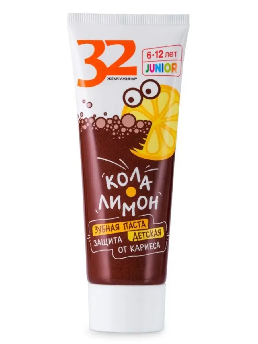 Cola-Lemon "32 Pearls JUNIOR" Children's Toothpaste with Cavity Protection from the Belarusian brand Modum is the ideal choice for comprehensive oral care for children aged 6 to 12 years. This children's toothpaste not only promotes dental health but also makes oral hygiene fun with its unique flavor. Fluoride ions in the toothpaste inhibit the growth of caries-causing bacteria, thereby preventing cavities. Sodium pyrophosphate softens plaque and effectively facilitates its removal, providing phosphorus for the formation of strong, healthy enamel. This children's toothpaste contains a soft polishing abrasive, allowing for gentle care of the delicate enamel of children's teeth. This toothpaste does not contain harsh abrasives, titanium dioxide, triclosan, chlorhexidine, or SLS. This "32 Pearls JUNIOR" flavored toothpaste provides reliable protection against cavities, maintains oral hygiene, and makes dental care a pleasant experience. Suitable for children just learning to care for their teeth, Modum, a Belarusian cosmetics line for comprehensive care, will help develop good oral hygiene habits from an early age, making every brushing a fun and delicious experience. Choose this toothpaste for your little ones and ensure healthy teeth for years to come!