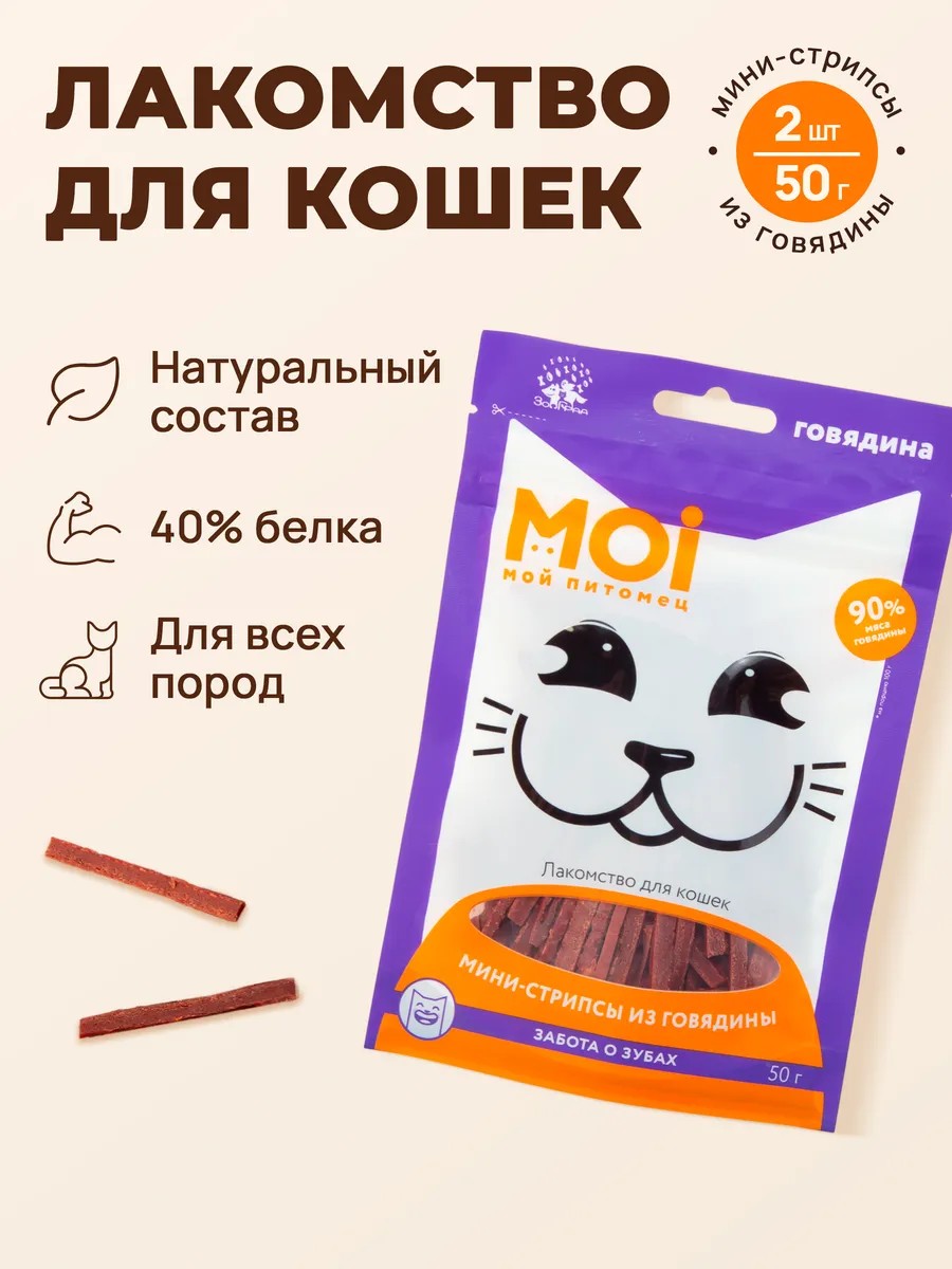 Лакомство для кошек MOI Мини-стрипсы из говядины 50г - это вкусный и полезный перекус для вашего любимца. Эти мини-стрипсы из натуральной говядины станут отличным способом побаловать кошку и поощрить ее за хорошее поведение. Благодаря своему маленькому размеру, лакомства удобно давать как во время игры, так и в качестве награды. MOI Мини-стрипсы из говядины богаты белком и не содержат искусственных красителей и ароматизаторов, что делает их идеальным выбором для заботливых хозяев. Подарите своему питомцу радость и пользу с лакомством MOI!