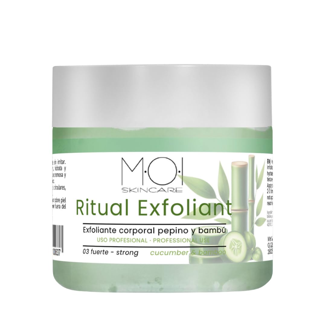 Discover renewed skin with Ritual Exfoliating Scrub, a body scrub designed to deeply cleanse without irritation. Its formula combines carefully selected natural ingredients to deliver softness, radiance, and freshness from the very first application. Enriched with calendula, avocado, bamboo, and cucumber extracts, this scrub soothes, hydrates, and revitalizes the skin, removing impurities and dead cells for a more even and radiant complexion. Its creamy texture and fresh scent make each use a true skincare ritual. DIRECTIONS Apply a small amount to damp skin and gently massage in circular motions, avoiding the eye area. Leave on for a few seconds and rinse with warm water. Recommended 2 to 3 times a week for renewed and radiant skin. SAFETY WARNING For external use only. Avoid contact with eyes. In case of contact, rinse thoroughly with water. Do not apply to irritated or broken skin. Discontinue use if an adverse reaction occurs. Keep out of reach of children. Store in a cool, dry place. See more✓ Instant hydration and freshness. ✓ Formula with natural ingredients. ✓ Brighter, more even skin tone from the first application. ✓ Gentle, non-irritating exfoliation.Gommage corporel concombre et bambou 03 Fort 250 g MOI SKINCAREDESCRIPTION DU PRODUIT DESCRIPTION DU PRODUIT Découvrez une peau renouvelée avec Ritual Exfoliant, un gommage corporel conçu pour nettoyer en profondeur sans irriter. Sa formule associe des ingrédients naturels soigneusement sélectionnés pour apporter douceur, brillance et fraîcheur dès la première application. Enrichi en extrait de calendula, d'avocat, de bambou et de concombre, ce gommage apaise, hydrate et revitalise la peau, éliminant les impuretés et les cellules mortes pour un teint plus uniforme et radieux. Sa texture crémeuse et son parfum frais font de chaque utilisation un véritable rituel de soin. MODE D'EMPLOI Appliquez une petite quantité sur la peau humide et massez doucement avec des mouvements circulaires, en évitant le contour des yeux. Laissez agir quelques secondes et rincez à l'eau tiède. Recommandé 2 à 3 fois par semaine pour une peau renouvelée et radieuse. AVERTISSEMENT DE SÉCURITÉ Usage externe uniquement. Éviter tout contact avec les yeux, en cas de contact, rincer abondamment à l'eau. Ne pas appliquer sur une peau irritée ou avec des plaies. Suspendre l'utilisation en cas de réaction indésirable. Tenir hors de portée des enfants. Conserver dans un endroit frais et sec. Voir plus✓ Hydratation et fraîcheur immédiate. ✓ Formule avec des ingrédients naturels. ✓ Peau plus lumineuse et uniforme dès la première application. ✓ Gommage doux sans irritation.