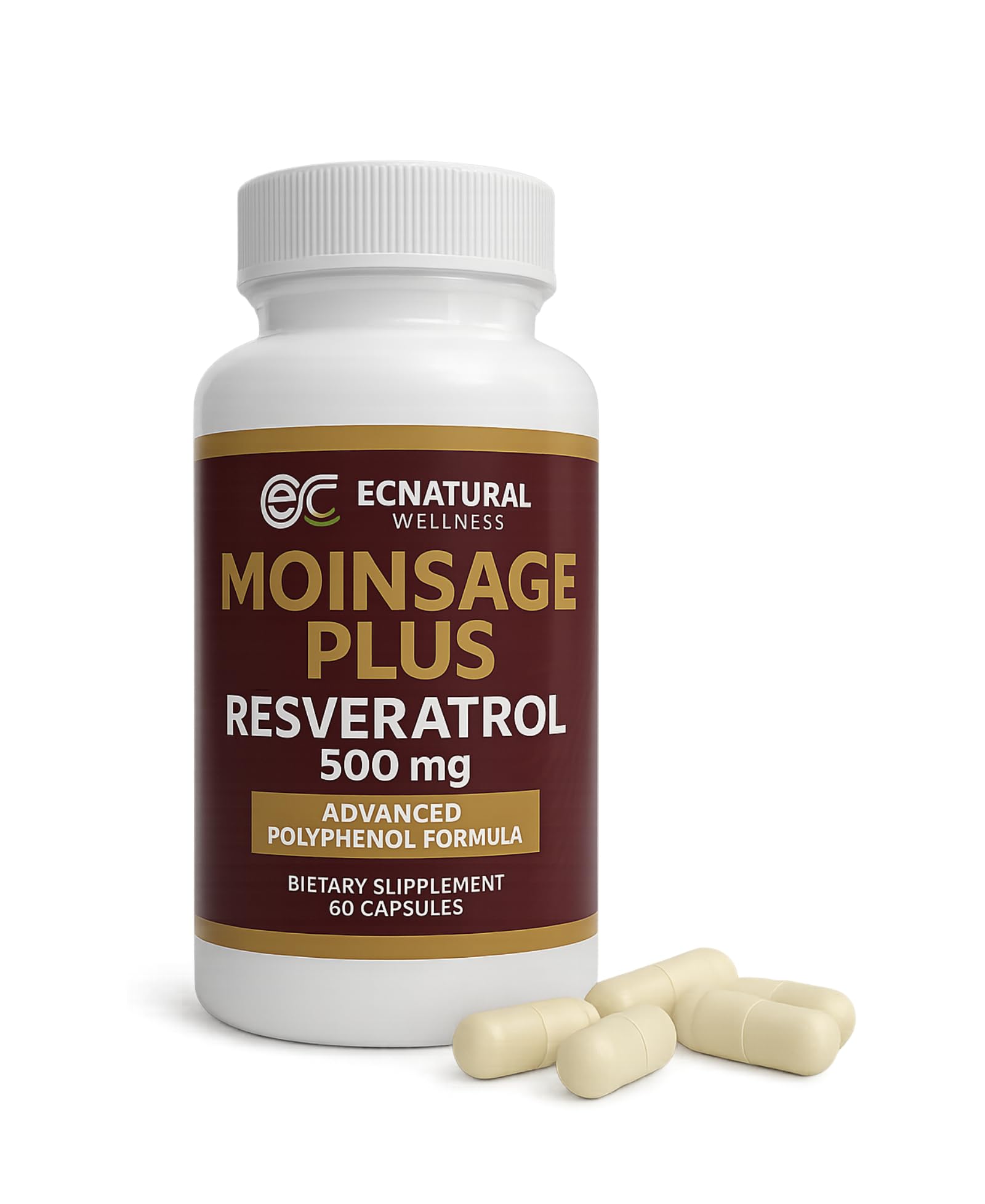 Moinsage Plus Resveratrol 500 mg | Advanced Polyphenol Formula | Daily Wellness Support | Plant-Based Ingredients | Easy-to-Take Capsules for Everyday Routine | 60 Capsules Moinsage