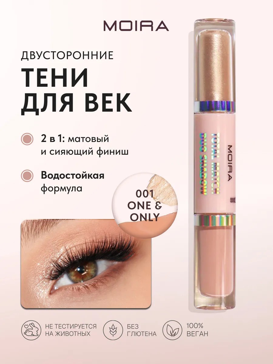Откройте для себя удивительные водостойкие тени для век MOIRA Total Match Duo, которые предлагают великолепное комбо в одной упаковке! Эти двусторонние тени превращают ваш макияж в настоящее искусство. С одной стороны удивляйте мир жидкой матовой текстурой, которая придаст вашим глазам глубокий и насыщенный вид. С другой — чарующее мерцание, которое обеспечит невероятное сияние и подчеркнёт вашу естественную красоту.