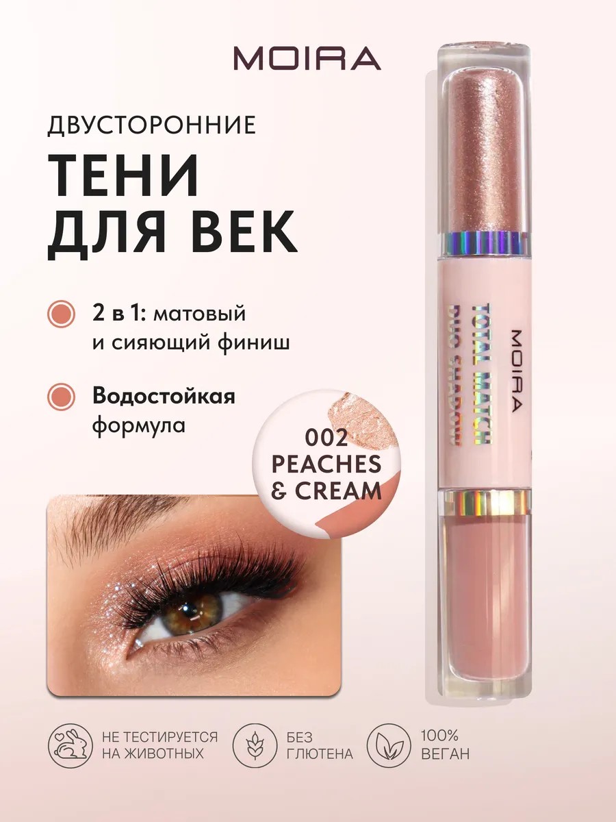 Откройте для себя удивительные водостойкие тени для век MOIRA Total Match Duo, которые предлагают великолепное комбо в одной упаковке! Эти двусторонние тени превращают ваш макияж в настоящее искусство. С одной стороны удивляйте мир жидкой матовой текстурой, которая придаст вашим глазам глубокий и насыщенный вид. С другой — чарующее мерцание, которое обеспечит невероятное сияние и подчеркнёт вашу естественную красоту.