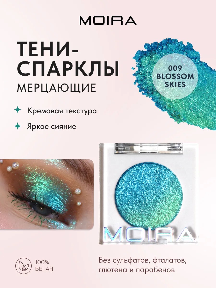 Оттенки теней эффект глиттера включают дуохромные перламутровые переливы. Их уникальная структура меняет цвет в зависимости от освещения. Они также подходят для профессионального визажа благодаря насыщенному пигменту и легкости растушевки. Перед нанесением советуем использовать праймер.