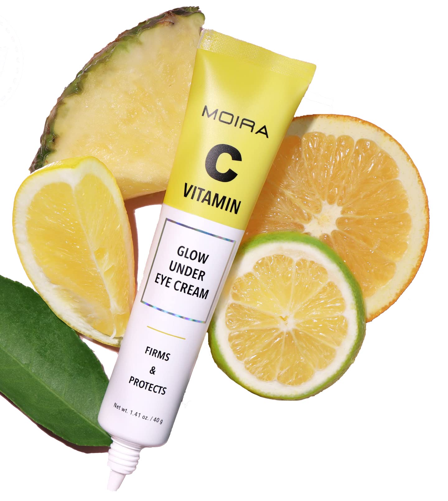 MOIRA Vitamin C Glow Under Eye Cream is a restorative eye cream containing powerful vitamin C ingredients with a weightless gel texture for under-eye skin. This formula containing Jeju Island green tangerine, orange, lemon, pineapple, and fig extracts delivers antioxidants and protects the skin. Its formula is gentle and safe for use around the eye area. Cruelty-Free Paraben Free Sulfates Free Phthalate Free Gluten Free Made in Korea HOW TO USE: Apply in small dots around the eye area and gently smooth until thoroughly absorbed. When using this product, avoid getting into eyes. If contact occurs, rinse thoroughly with water. NET WEIGHT: 1.41 fl.oz. / 40 ml Ingredients:Water, Glycerin, Butylene Glycol, Triethylhexanoin, Squalane, Caprylic/Capric Triglyceride, Cyclopentasiloxane, Niacinamide, Cetyl Alcohol, Cetearyl Olivate, Sorbitan Olivate, Citrus Reticulata (Tangerine) Fruit Extract, Citrus Aurantium Dulcis (Orange) Fruit Extract, Punica Granatum Fruit Extract, Ficus Carica (Fig) Fruit Extract, Morus Alba Fruit Extract, Ginkgo Biloba Nut Extract, Corallina Officinalis Extract, Ananas Sativus (Pineapple) Fruit Extract, Citrus Limon (Lemon) Fruit Extract, Ceresin, Dimethicone/Vinyl Dimethicone Crosspolymer, Sodium Acrylate/Sodium Acryloyldimethyl Taurate Copolymer, Palmitic Acid, Isohexadecane, Stearic Acid, Carbomer, Arginine, Polysorbate 80, Xanthan Gum, Melia Azadirachta Flower Extract, Pyridoxine HCl, Ocimum Sanctum Leaf Extract, Adenosine, Melia Azadirachta Leaf Extract, Sorbitan Oleate, Alcohol, Curcuma Longa (Turmeric) Root Extract, PEG-35 Castor Oil, Aesculus Hippocastanum (Horse Chestnut) Seed Extract, Myristic Acid, Tris(Tetramethylhydroxypiperidinol) Citrate, Hydrogenated Phosphatidylcholine, Ascorbic Acid, Polysorbate 20, Tocopherol, Centella Asiatica Extract, Sucrose Stearate, Cetearyl Alcohol, Inositol, Retinyl Palmitate, Calcium Pantothenate, Linoleic Acid, Biotin, Asiaticoside, Madecassic Acid, Asiatic Acid, Madecassoside, Disodium EDTA, ChlorphenesinNET WEIGHT: 1.41 fl.oz. / 40 ml. Cruelty-Free Paraben Free Sulfates Free Phthalate Free Gluten Free. Its formula is gentle and safe for use around the eye area. This formula containing Jeju Island green tangerine, orange, lemon, pineapple, and fig extracts delivers antioxidants and protects the skin. Vitamin C Glow Under Eye Cream is a restorative eye cream containing powerful vitamin C ingredients with a weightless gel texture for under-eye skin.