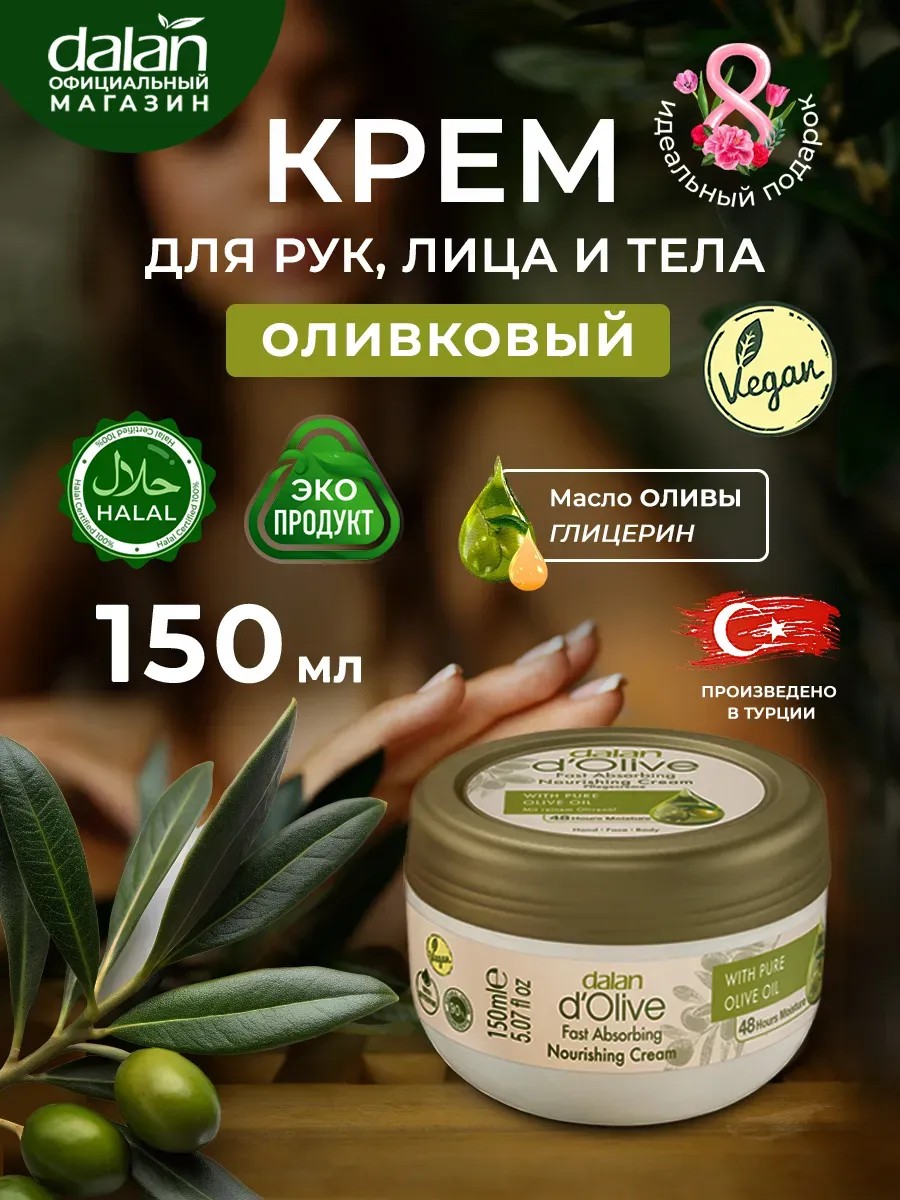 This moisturizing hand cream was created specifically to quickly nourish the skin. The Dalan d'Olive hand cream set is suitable for all skin types, not just the hands but the entire body. Dalan's nourishing moisturizing cream with shea butter and glycerin is one of Dalan's most popular cosmetics. Turkish cosmetics, Dalan, are renowned for their natural ingredients and gentle therapeutic effect on the skin. Thanks to its natural base, this cream can be used at any time of day and is suitable even for hypersensitive skin. Containing natural olive and shea oils, it provides a more hydrating effect than foot creams with urea. The hand cream set comes in mini tubes, convenient for carrying in a bag. This mini hand cream will become your daily lifesaver when you're out and about, as it's perfect as a cream for problem skin, a daytime face cream, and a heel cream for cracked and dry heels, and it works better than creams containing urea. This mini hand cream is virtually never allergenic, as it contains only natural essential oils, medicinal plant concentrates, three types of olive oil, nourishing and moisturizing shea butter, and glycerin, which helps skin retain moisture. This hand cream will last a long time. Scented with natural essential oils, this hand and body cream can be used as an evening cream under makeup or as a nourishing daytime face cream. If you have small children and don't have diaper rash cream, Dalan d'Olive's nourishing and moisturizing hand and body cream will quickly solve this problem. All baby creams are based on olive oil, just like Dalan d'Olive's nourishing and moisturizing cream. You can purchase moisturizing hand cream directly at Turkish Cosmetics.
