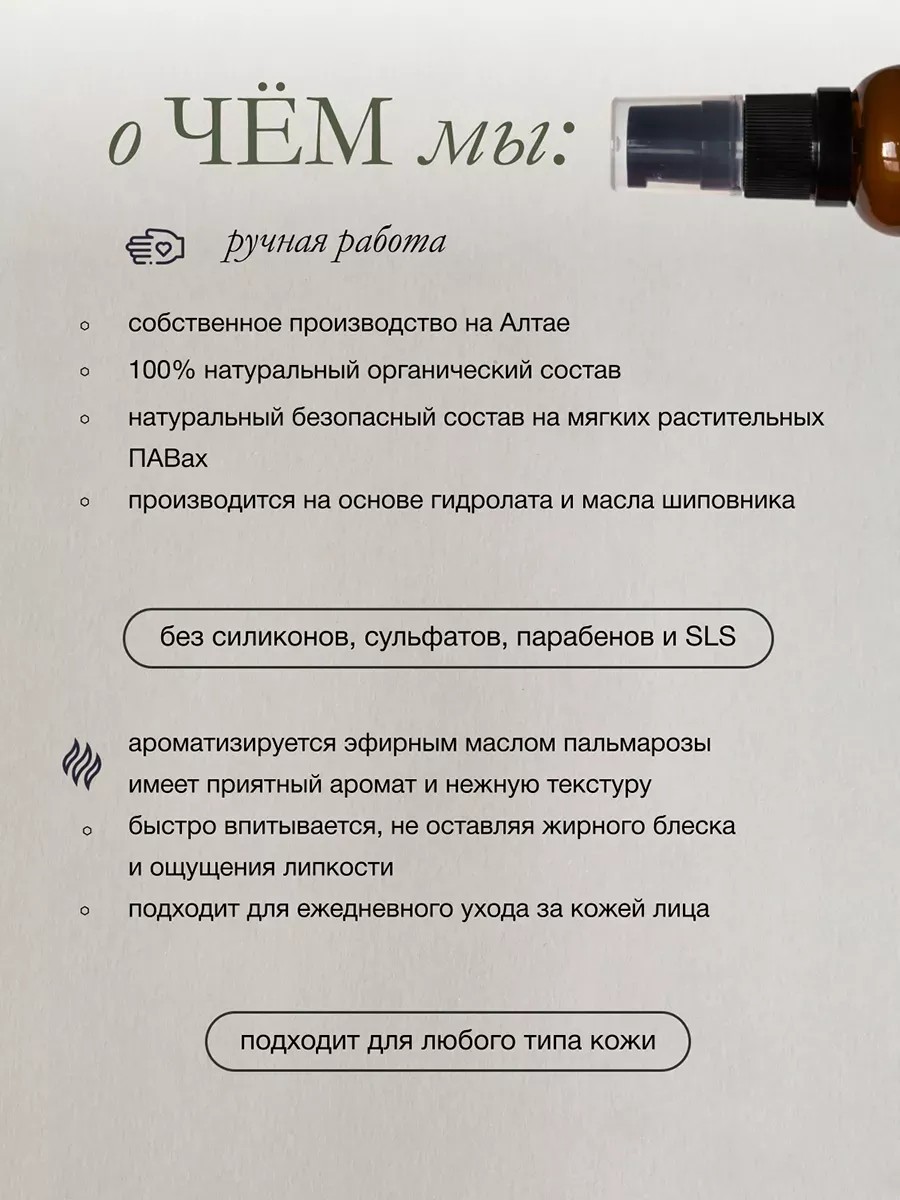 Altai Natural Rosehip Face Cream from ALTAY BOTANICA is an effective skincare product that nourishes and moisturizes your skin! This formula, with vitamin C, rosehip hydrolate and oil, aloe vera gel, and glycerin, provides a softening, restorative, rejuvenating, and smoothing effect. It stimulates collagen production, increasing the elasticity and firmness of the skin. This nourishing product has a firming, lifting effect. It has a pleasant aroma and a light, delicate texture that absorbs quickly without leaving a film or greasy residue. This intensive anti-aging formula, based on organic ingredients, smoothes fine lines. This versatile cosmetic product can be used as a makeup base. It's made in-house in Altai and suitable for all skin types, including problematic and dry, sensitive, and combination skin. Its formula provides professional-grade skincare at home. It combats flaking and dryness, providing a protective anti-inflammatory effect. It's an excellent choice for both adult women and men, as well as young girls and boys. The product comes in a beautiful 30 ml glass bottle with a convenient dispenser. It contains no harmful chemicals, parabens, or synthetic dyes, eliminating the risk of allergies. The formula, with rosehip extract, is specifically designed for your beauty and health. It penetrates deep into the dermis, leaving it smoother and more radiant. It strengthens the protective barrier of the epidermis and is suitable for both young and mature women. It's a great choice for evening out skin tone. This moisturizer will leave you feeling comfortable and makes a great purchase for yourself or a wonderful gift for your mom, grandma, sister, or best friend. The brand's collection also includes "Mountain Energy" cream with Altai mumiyo. We have promotions and sales, and you can buy our products as gifts at a discount!