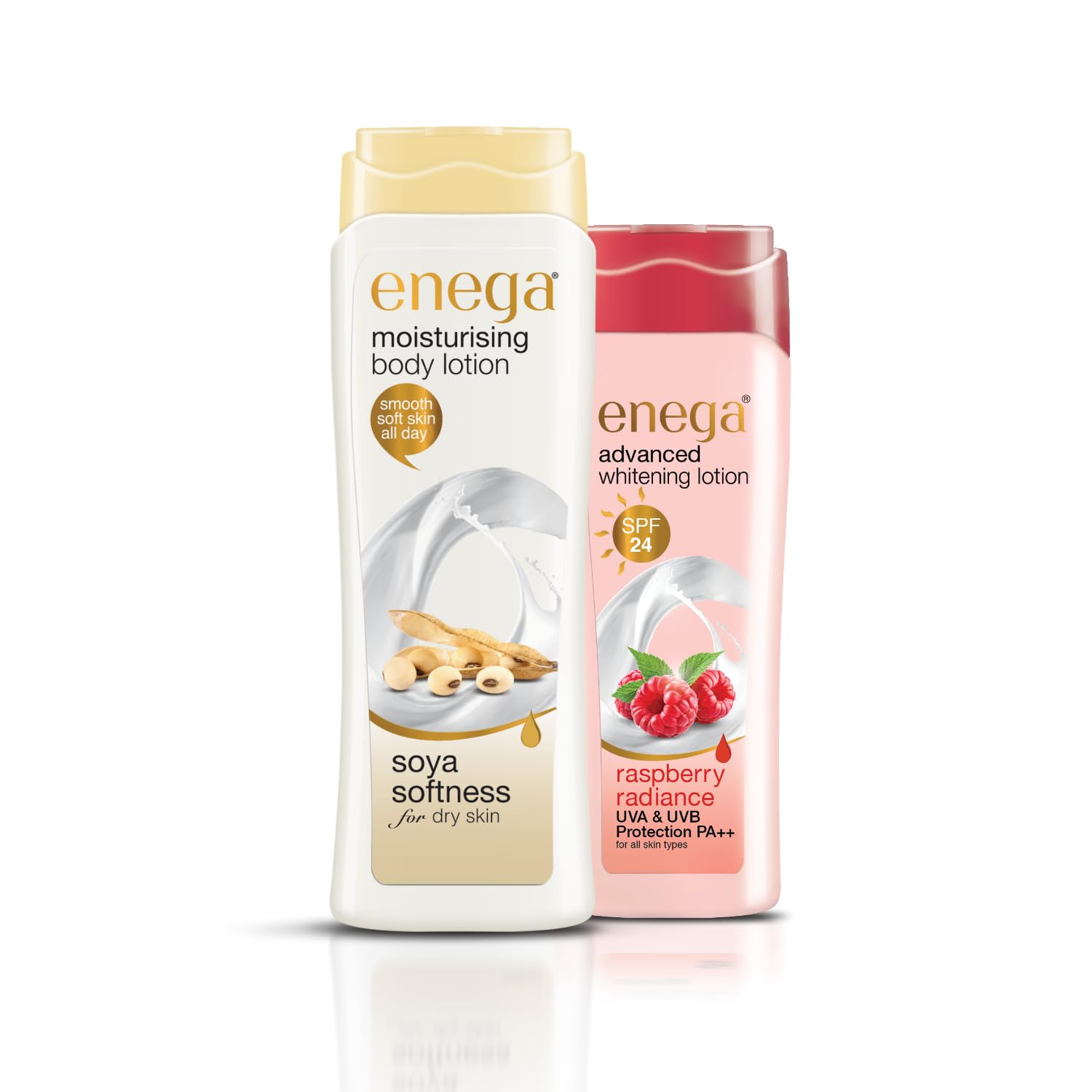 Introducing Enega Soya And SPF 24 PA Raspberry Radiance Moisturizing Body Lotion, your daily companion for hydrated, nourished skin. Formulated with the goodness of Soya extracts, this lotion provides deep hydration and essential nourishment to your skin, leaving it feeling soft, smooth, and rejuvenated. Our unique Soya And SPF 24 PA Raspberry Radiance Body Lotion is specially crafted to offer fast-absorbing hydration, making it perfect for daily use. Say goodbye to dry, rough skin as our gentle formula provides effective relief and long-lasting moisture, keeping your skin hydrated throughout the day. Dermatologist recommended and paraben-free, our Soya And SPF 24 PA Raspberry Radiance Moisturizing Body Lotion is suitable for all skin types, including sensitive skin. It's also fragrance-free, ensuring a pleasant experience without any overpowering scents. Enriched with Soya extracts, this lightweight lotion delivers soothing hydration, leaving your skin feeling refreshed and revitalized. Experience the non-greasy formula that absorbs quickly, allowing you to go about your day without any sticky residue. Indulge in the luxurious feeling of smooth and silky skin with Enega Soya And SPF 24 PA Raspberry Radiance Moisturizing Body Lotion. Pamper yourself with the nourishing benefits of Soya and embrace all-day hydration for a healthier-looking complexion. Treat your skin to the ultimate care with Enega Soya And SPF 24 PA Raspberry Radiance Moisturizing Body Lotion – your go-to solution for hydrated, radiant skin.