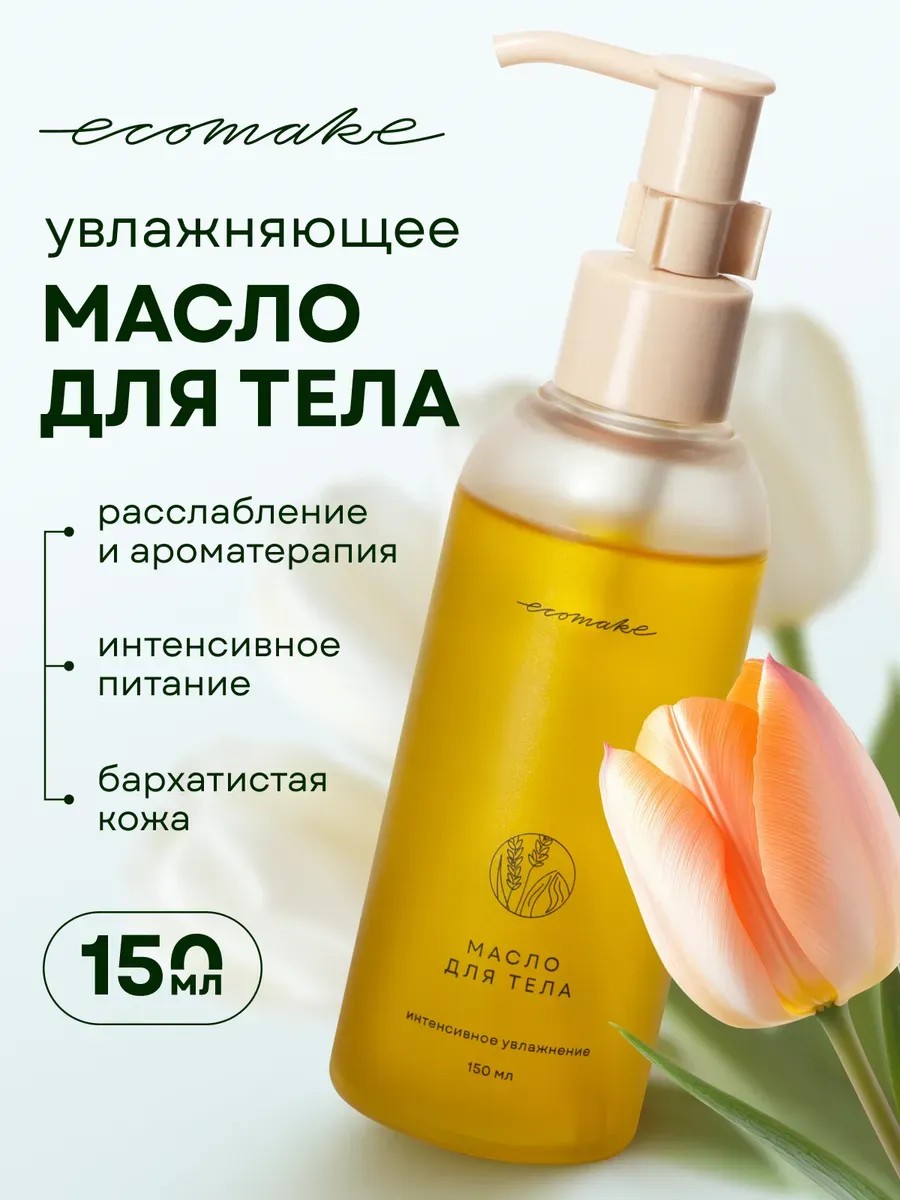 Масло увлажняющее для кожи тела от Ecomake - это настоящий подарок для вашей кожи. Масло массажное экомейк 100% натуральное и создано из комплекса ценных масел. Экстракт апельсина входит в состав крем масла для тела, которое насыщает кожу витаминами, выравнивает рельеф и позволяет надолго сохранить гладкость и упругость тела, работает как антицеллюлитное масло. Масло нероли ускоряет регенерацию клеток кожи, тонизирует и омолаживает. Миндальное масло придает коже гладкость и повышает эластичность. Гипоаллергенное средство экомэйк не содержит силиконов, парабенов, синтетических ароматизаторов и консервантов. Уходовая косметика Экомейк в виде нежного крем масла увлажняет и питает кожу, быстро впитывается и не оставляет жирных следов. Масло для тела массажное защищает от растяжек при беременности, как профилактика против растяжек на груди, на бёдрах, животе до и после родов. Масло для душа, ванны и бани усиливает процессы регенерации. Масло лосьон для тела Ecomake подходит для беременных и кормящих мам, а также для новорожденных детей и малышей. Также наше масло можно использовать для интимного массажа. Отличный подарок девушке и женщине на день рождения, как дополнение в подарочный набор, бьюти-бокс. Допускается образование естественного осадка, флакон 100 мл. Масло увлажняющее для кожи тела Экомэйк - это идеальный уход с заботой о коже, обеспечивающий ей необходимое питание и увлажнение!