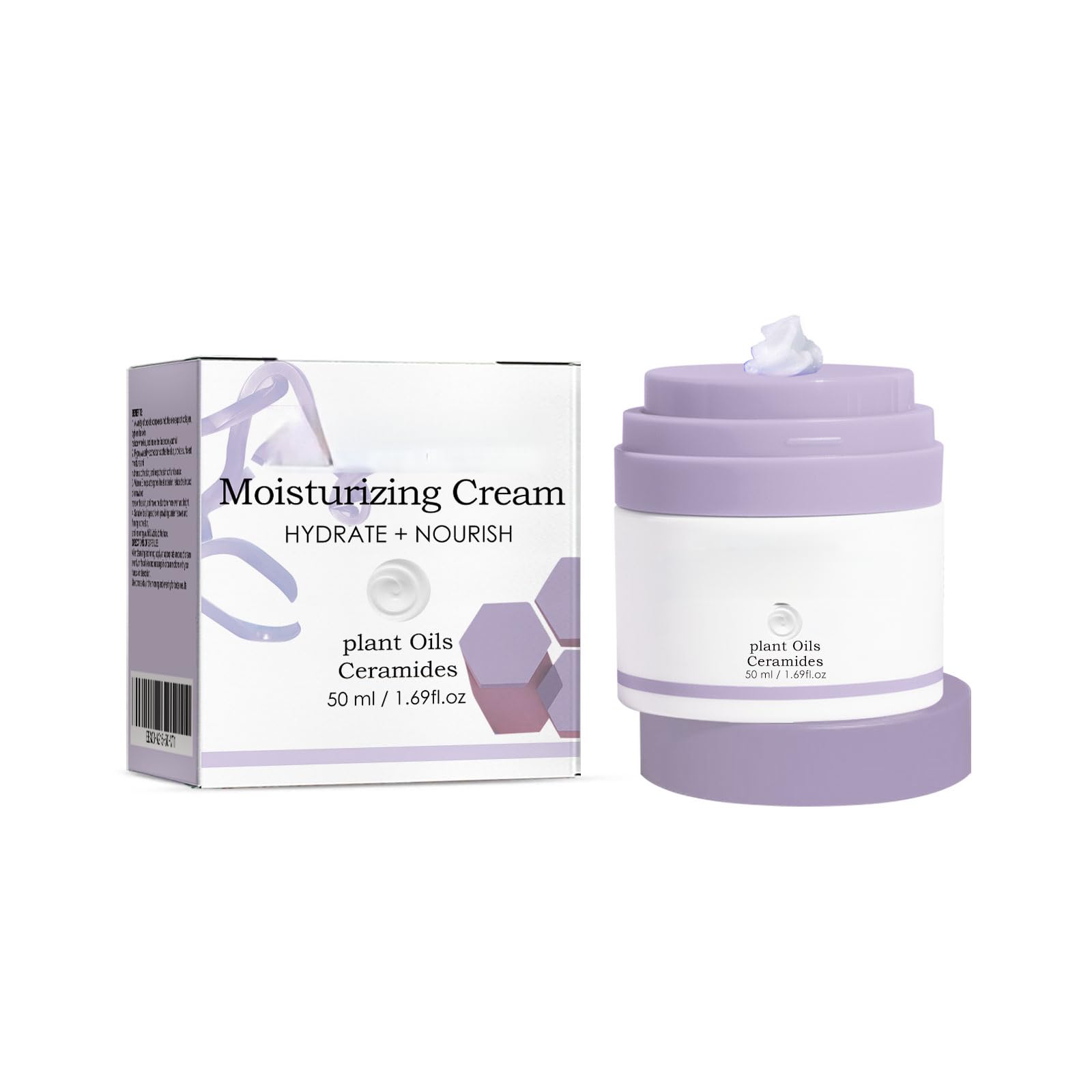 Packaging size: 7.7 6.5 6.5cm. Ingredients: Glycerin, Mineral Oil, Glycerin Stearate. Gross weight: 163g. Keywords: Hydrating and Moisturizing. Product Name: Moisturizing Cream. Net content: 50ml.